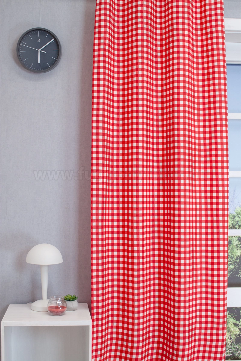 Tűzpiros és fehér színű nagykockás minőségi kevert vászon anyag, alkalmas sötétítő és dekor függönynek, valamint asztalterítőnek és díszpárna huzatnak egyaránt. Egyszínű és kiskockás változatban is kapható.