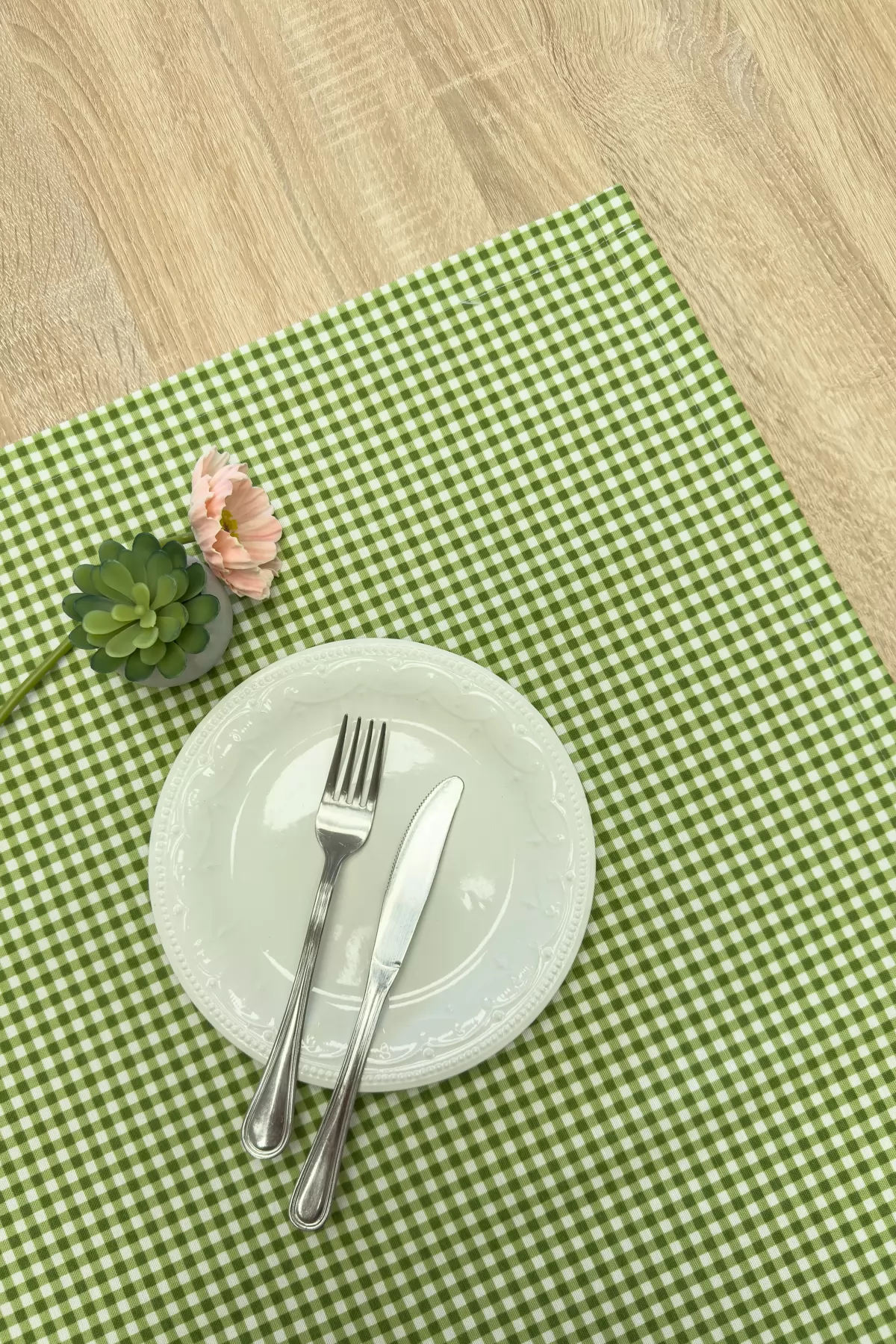Zöld színű kiskockás vízlepergető vászon dekor és egyedi méretű asztalterítő