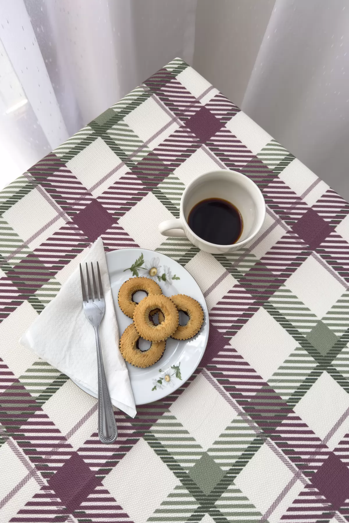 Wilton grid - Bézs alapon lila-zöld kockamintás rusztikus vászon dekor függöny és abrosz anyag