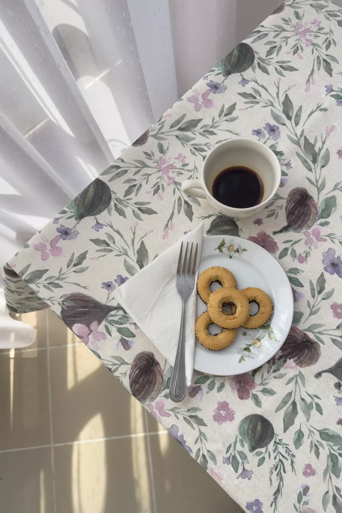 Szicilia - Homokszínű alapon virágmintás dekor és abrosz anyag