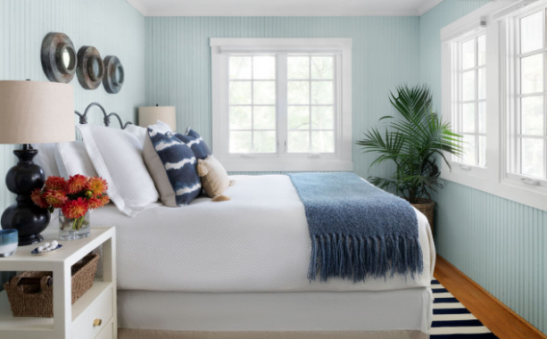 Az első emeleten két hálószoba és egy teljes fürdőszoba található. Ez Tündi és Miklós hálószobája. Itt nem sokat változtattak, az egyetlen átalakítás az, hogy a meglévő lambéria deszkát halványkékre festették. Emellett néhány új tokos ablakot is beépítettek a ház oldalára. Az ágy fölött három lőrés alakú tükör tengeri hangulatot kölcsönöz.