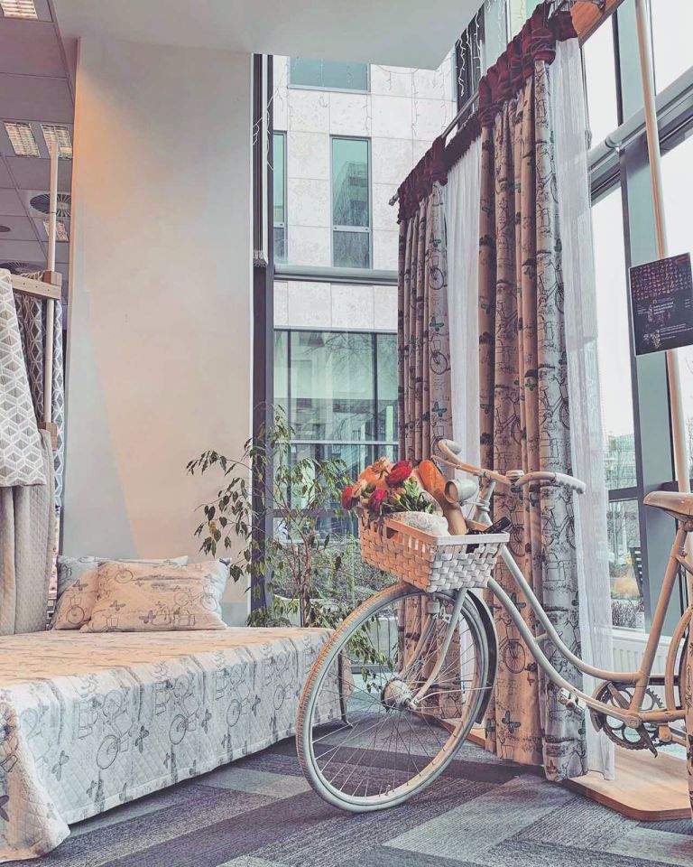 Ez a biciklimintás szövött ágytakaró romantikus lányszobákba illik.