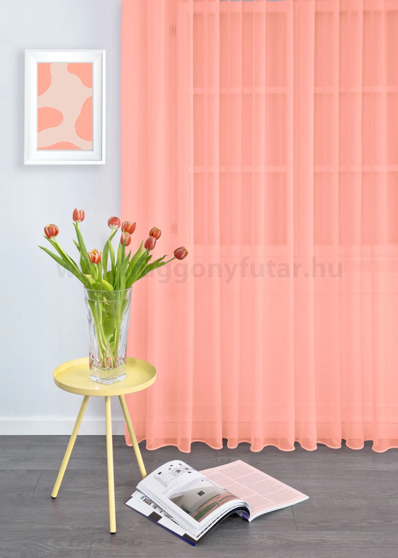 Lazac színű, sárgás rózsaszínű minta nélküli voile függöny. 290 cm magas.