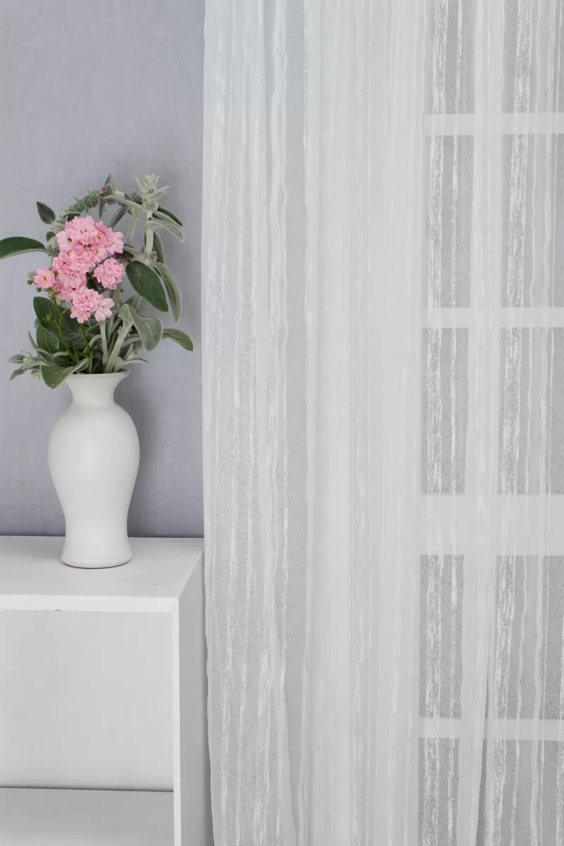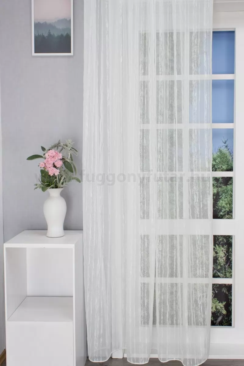 Könnyen kezelhető sable függöny. Fehér alapon változó vastagságú fehér szálakkal átszőve. Egyszerűsége teszi elegánssá, sokféle stílusú berendezéshez illeszthető. A bézs szín kellemes melegséggel árasztja el szobánkat Ez a meleg, természetes árnyalatú anyag remekül mutat bármilyen térben, amit otthonos, meleg színekkel szeretnénk berendezni. A bézs színű fényáteresztő függönyökhöz általában a sötétbarna, sötétkék, bordó, zöld, narancs, lila és szürke színű sötétítő és dekorfüggönyök illenek legjobban.Az otthon melegsége és kényelme Az ősz típusú textíliák a bekuckózós, meleg, hívogató hangulat megteremtésének mesterei. Színviláguk gazdag és földközeli: a rozsdabarna, a mustársárga, a terrakotta, a mélyzöld és a bézs árnyalatai jellemzik. Tökéletes választás a barátságos, gondoskodó személyiségeknek. Anyaga diszkréten simul bele a térbe, miközben kiemeli a helyiség hangulatát. Ideális választás, ha olyan textilt keresünk, amely rugalmasan alkalmazkodik a meglévő bútorokhoz és kiegészítőkhöz.Anyaga: sablé Változó vastagságú szálakból szőtt anyag. Kevésbé hajlamos a gyűrődésre , mint a voile. 1.5x-es ráncolással ajánljuk.Terasz ajtókhoz, nagyobb ablakok függönyözéséhez jól használható A karnistól a felső szegéshez szükséges anyagot beleszámítva legfeljebb 288 cm hosszú függönyt lehet belőle varrni, ez alatt bármilyen méretben elkészítjük. Méreténél fogva alkalmas lehet terasz- és erkélyajtók, nagy belmagasságú helyiségek valamint normál ablakok függönyözésére is. A függöny aljába gyárilag varrt ólomzsinór megfelelő esést kölcsönöz a függönynek, megakadályozza az indokolatlan fellebbenést és az apróbb ráncokat is kisimítja.