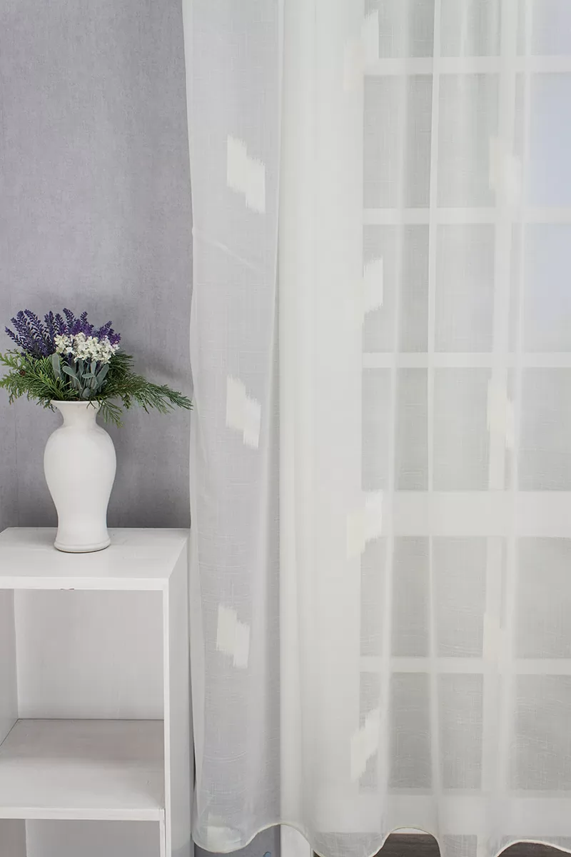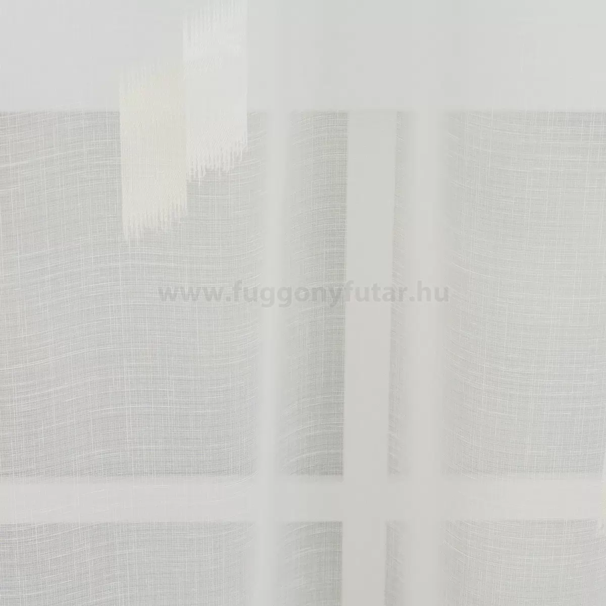 Ezt a tört fehér alapon fehér és krém színű sablé függönyt ismétlődő ecsetnyomszerű minták díszítik. Jól kezelhető, az anyagába hálószerűen belszövött erősebb szálak jó tartást biztosítanak.A geometrikus mintákkal otthonunk megtelik eleganciával, mégis egyszerű és modern marad Egyszerű formák ritmusos ismétlődése jellemzi legjobban ezt a geometrikus mintázatú anyagot. Egyszínű vagy visszafogott mintázatú sötétítővel párosítsuk, hogy hangsúlyos maradhasson a függöny formavilága. A bézs szín kellemes melegséggel árasztja el szobánkat Ez a meleg, természetes árnyalatú anyag remekül mutat bármilyen térben, amit otthonos, meleg színekkel szeretnénk berendezni. A bézs, mintás fényáteresztő függönyökhöz általában a sötétbarna, sötétkék, bordó, zöld, narancs, lila és szürke színű sötétítő és dekorfüggönyök illenek legjobban.Ez a függöny vintage lakberendezési stílushoz jól illeszthető Ez a függöny tökéletesen illeszkedik a vintage stílus nosztalgiájához. Anyaga diszkréten simul bele a térbe, miközben kiemeli a helyiség hangulatát. Ideális választás, ha olyan textilt keresünk, amely rugalmasan alkalmazkodik a meglévő bútorokhoz és kiegészítőkhöz.Az otthon melegsége és kényelme Az ősz típusú textíliák a bekuckózós, meleg, hívogató hangulat megteremtésének mesterei. Színviláguk gazdag és földközeli: a rozsdabarna, a mustársárga, a terrakotta, a mélyzöld és a bézs árnyalatai jellemzik. Tökéletes választás a barátságos, gondoskodó személyiségeknek. Anyaga diszkréten simul bele a térbe, miközben kiemeli a helyiség hangulatát. Ideális választás, ha olyan textilt keresünk, amely rugalmasan alkalmazkodik a meglévő bútorokhoz és kiegészítőkhöz.Anyaga: sablé Változó vastagságú szálakból szőtt anyag. Kevésbé hajlamos a gyűrődésre , mint a voile. 1.5x-es ráncolással ajánljuk.Terasz ajtókhoz, nagyobb ablakok függönyözéséhez jól használható A karnistól a felső szegéshez szükséges anyagot beleszámítva legfeljebb 303 cm hosszú függönyt lehet belőle varrni, ez alatt bármilyen méretben elkészítjük. Méreténél fogva alkalmas lehet terasz- és erkélyajtók, nagy belmagasságú helyiségek valamint normál ablakok függönyözésére is. A függöny aljába gyárilag varrt ólomzsinór megfelelő esést kölcsönöz a függönynek, megakadályozza az indokolatlan fellebbenést és az apróbb ráncokat is kisimítja.Vasalást kevésbé igénylő anyag Az anyag kevesebb vasalást igényel, mint az átlag függöny. Sokszor elég, ha mosás után még nedvesen a helyükre akasztjuk, így kilógva magát a ráncok kisimulnak és a függönyünk teljes pompájában ragyog!
