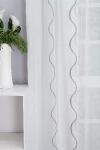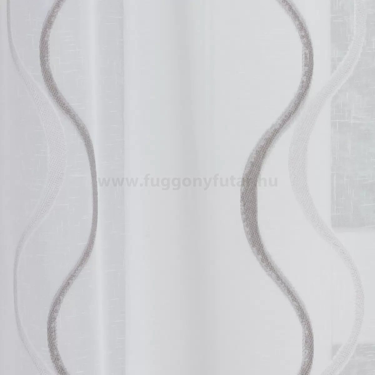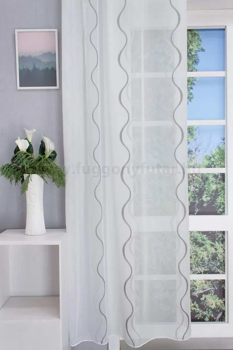 Modern bútorok közé illik ez a tört fehér, tetra sablé függöny. A függőlegesen hullámzó ezüst színű, nyírt mintája teszi érdekessé, változatossá a felületét.