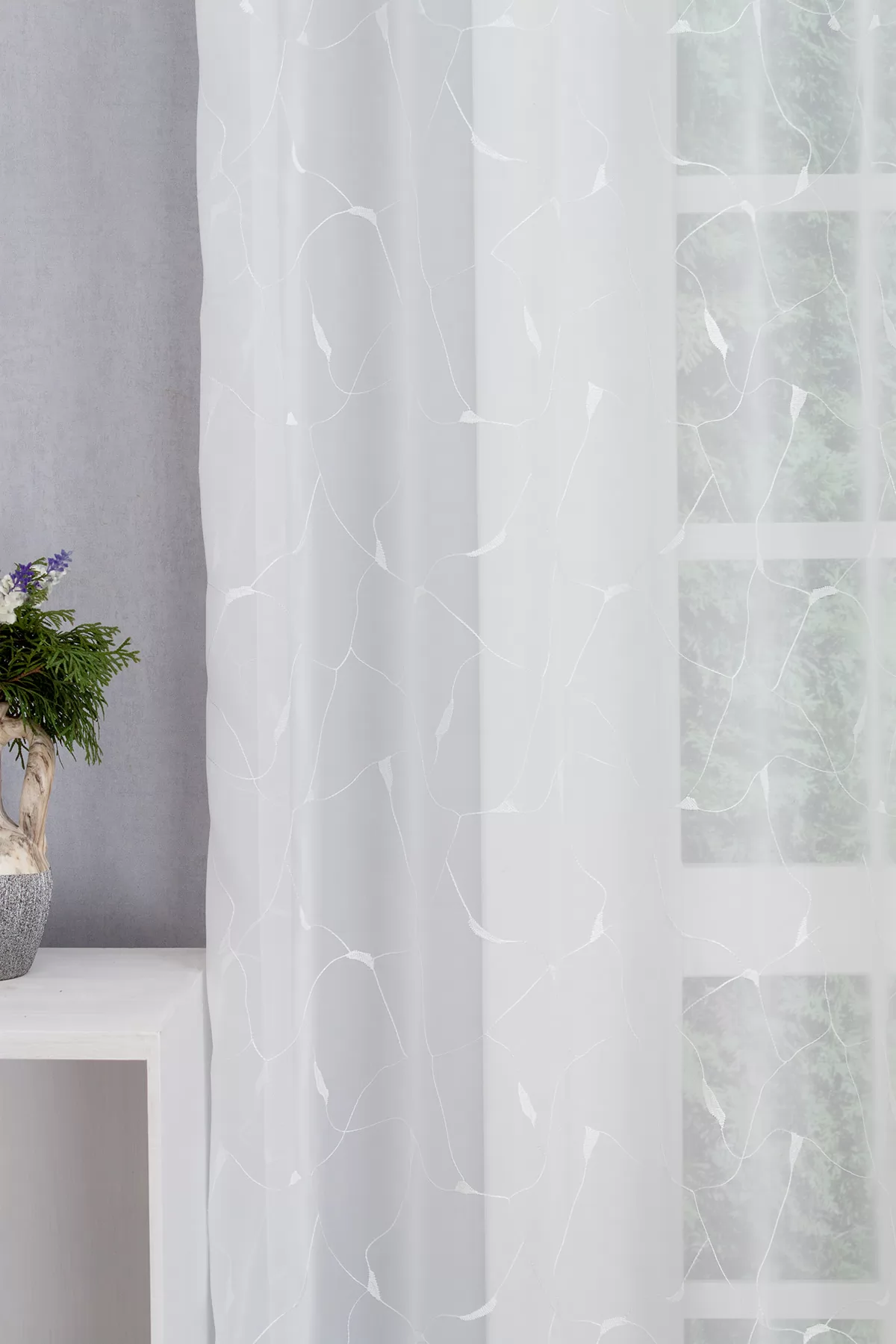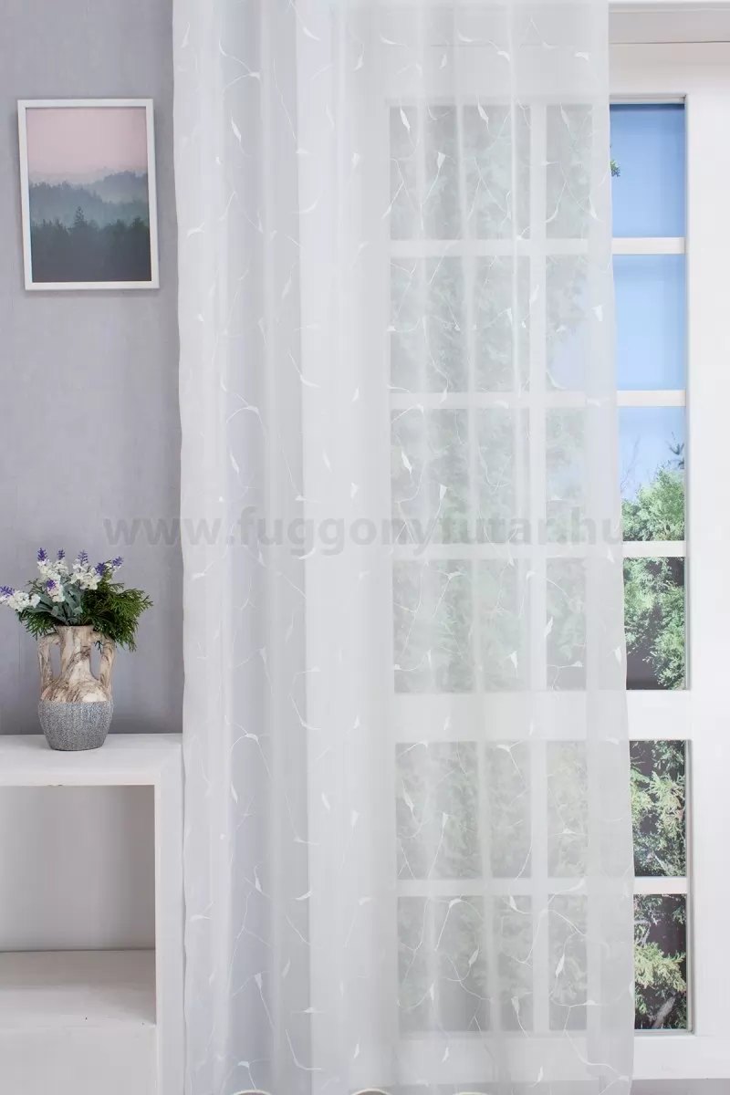 Modern lakások stílusához illeszkedik ez a hímzett halvány ekrü színű voile függöny. A finom, vékony vonalháló kövek repedéseit, levelek erezetét idézi, érdekesés, játékossá varázsolja a felületét.Teremtsünk romantikus hangulatot szobánkba ezzel a kellemes, virágmintás anyaggal! A virágminták vagy növényi minták mindig is népszerűek voltak a textiltervezők és lakberendezők körében, hiszen barátságossá és természetközelivé teszik otthonunkat. Egyszínű, színben harmonizáló textilekkel kombinálva romantikus stílust és kiegyensúlyozott megjelenést kölcsönözhetünk helyiségünknek. A bézs szín kellemes melegséggel árasztja el szobánkat Ez a meleg, természetes árnyalatú anyag remekül mutat bármilyen térben, amit otthonos, meleg színekkel szeretnénk berendezni. A bézs színű fényáteresztő függönyökhöz általában a sötétbarna, sötétkék, bordó, zöld, narancs, lila és szürke színű sötétítő és dekorfüggönyök illenek legjobban.A megújulás energiája otthonában A tavasz típusú textíliák frissességet, optimizmust és energiát sugároznak. Színvilágukban a zsenge zöldek, a napsárgák, a barackos árnyalatok és a tiszta kékek dominálnak. Ez a stílus tökéletesen illik a dinamikus, vidám személyiségekhez. Anyaga diszkréten simul bele a térbe, miközben kiemeli a helyiség hangulatát. Ideális választás, ha olyan textilt keresünk, amely rugalmasan alkalmazkodik a meglévő bútorokhoz és kiegészítőkhöz.Anyaga: voile Vékony, könnyed, fátyolszerű anyag . Az organzához képest vastagabb szálakból szövik, így kevésbé átlátszó, nehezebben gyűrődik, bár vasalást azért igényel (gőzölős vasalóval viszonylag könnyen, sérülésmentesen vasalható). 1.5x v. 2x-es ráncolással ajánljuk.Terasz ajtókhoz, nagyobb ablakok függönyözéséhez jól használható A karnistól a felső szegéshez szükséges anyagot beleszámítva legfeljebb 288 cm hosszú függönyt lehet belőle varrni, ez alatt bármilyen méretben elkészítjük. Méreténél fogva alkalmas lehet terasz- és erkélyajtók, nagy belmagasságú helyiségek valamint normál ablakok függönyözésére is. A függöny aljába gyárilag varrt ólomzsinór megfelelő esést kölcsönöz a függönynek, megakadályozza az indokolatlan fellebbenést és az apróbb ráncokat is kisimítja.