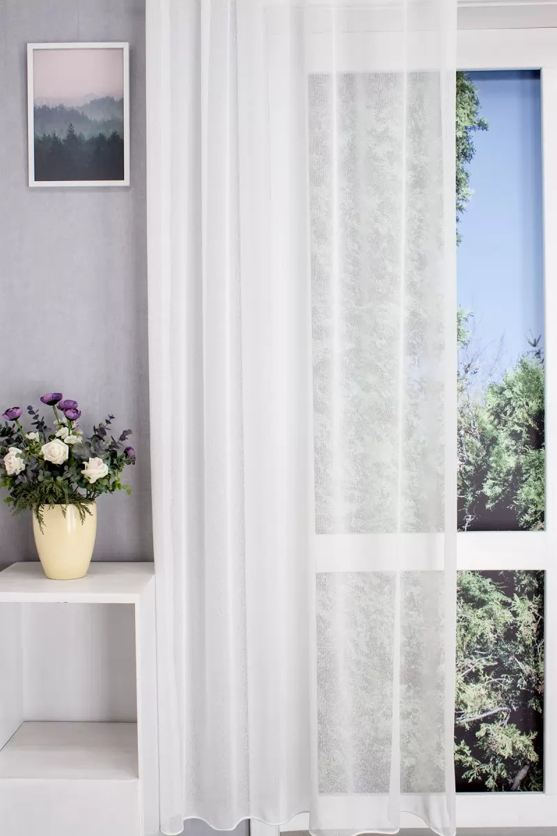 Modern, minimál stílusú szobákba illeszthető ez a fehér, fényes szálú, erős, sodrott fonalakból szőtt, rusztikus felületű, jó tartású sablet függöny. Könnyen kezelhető, kímélő mosás után helyére akasztva szárítható, gőzölős vasalóval simítható.A minta nélküli anyagok univerzálisak, jól passzolnak bármihez A minta nélküli anyagokhoz bármilyen színben harmonizáló mintás anyagot, tapétát remekül párosíthatunk. A fehér szín légies és világos, fényt hoz a szobába A fehér a világosság és a tisztaság színe, egész nap érezhetjük a friss tavaszi szellő simogatását, ha egy szép fehér függöny díszíti az ablakunkat. A fehér színű fényáteresztő függönyöket bármilyen színű sötétítő függönnyel kombinálhatjuk, de a szoba falának színét mindig vegyük figyelembe.Ez a függöny többféle lakberendezési stílushoz is jól illeszthető Ez a függöny több lakberendezési irányzathoz is tökéletesen illeszkedik – legyen szó a minimál letisztultságról, az industrial stílus karakteréről, a klasszikus eleganciáról vagy a mediterrán könnyedségről. Anyaga diszkréten simul bele a térbe, miközben kiemeli a helyiség hangulatát. Ideális választás, ha olyan textilt keresünk, amely rugalmasan alkalmazkodik a meglévő bútorokhoz és kiegészítőkhöz.Drámai és luxus hatás A tél típusú anyagok merészek, elegánsak és egy csipetnyi drámát visznek a térbe. Színvilágukban az éles kontrasztok és a mély, gazdag ékszertónusok dominálnak, mint a smaragdzöld, a zafírkék, a rubinvörös, kiegészítve a feketével, fehérrel és fémes csillogással. Ideális a magabiztos, kifinomult személyiségeknek. Anyaga diszkréten simul bele a térbe, miközben kiemeli a helyiség hangulatát. Ideális választás, ha olyan textilt keresünk, amely rugalmasan alkalmazkodik a meglévő bútorokhoz és kiegészítőkhöz.Anyaga: struktúr Vastagabb szálakból, hálószövéssel készült függöny anyag. Akár szúnyoghálóként is alkalmazható. 1.5x-es ráncolással ajánljuk.Terasz ajtókhoz, nagyobb ablakok függönyözéséhez jól használható A karnistól a felső szegéshez szükséges anyagot beleszámítva legfeljebb 308 cm hosszú függönyt lehet belőle varrni, ez alatt bármilyen méretben elkészítjük. Méreténél fogva alkalmas lehet terasz- és erkélyajtók, nagy belmagasságú helyiségek valamint normál ablakok függönyözésére is. A függöny aljába gyárilag varrt ólomzsinór megfelelő esést kölcsönöz a függönynek, megakadályozza az indokolatlan fellebbenést és az apróbb ráncokat is kisimítja.