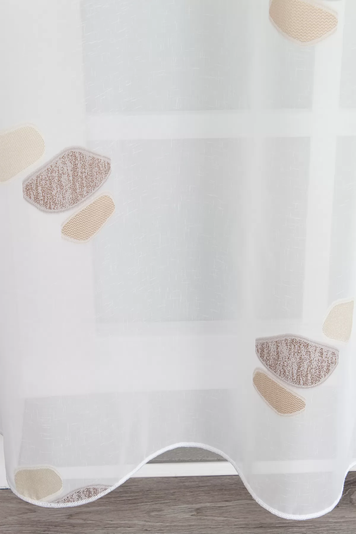 Fehér, bézs barna, aranysárga színű,kavics mintás tetra sablet függöny , ólomzsinóros, 300 cm - egyedi méretre varrjuk! KIFUTÓ MODELL!