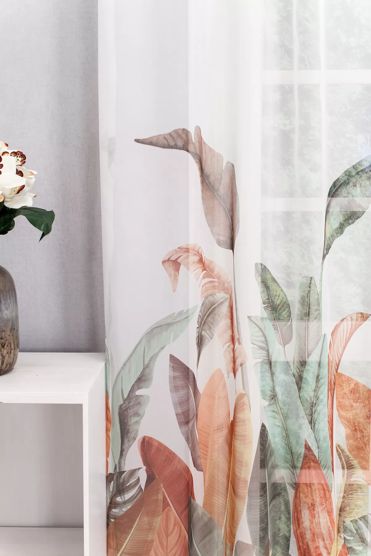 Természet kedvelőknek ajánljuk ezt a voile függönyt. Szemet nyugtató sokféle zöld, meleg narancs szín, változatos formájú levelek, mintha az esőerdőben lennénk! A függöny felső része szabad kilátást ad a kertre, alul szépen megfestett növények díszítik. Teremtsünk romantikus hangulatot szobánkba ezzel a kellemes, virágmintás anyaggal! A virágminták vagy növényi minták mindig is népszerűek voltak a textiltervezők és lakberendezők körében, hiszen barátságossá és természetközelivé teszik otthonunkat. Egyszínű, színben harmonizáló textilekkel kombinálva romantikus stílust és kiegyensúlyozott megjelenést kölcsönözhetünk helyiségünknek. Egy szenvedélyes és életteli vörös az Ön otthonát is vonzóvá varázsolja! Étkezőkben a vörös színárnyalatok növelik az étvágyat és a beszélgetőkedvet. A vörös mintás fényáteresztő függönyökhöz általában a fekete, sötétkék, bordó és szürke színű sötétítő és dekorfüggönyök illenek legjobban.Ez a függöny mediterrán lakberendezési stílushoz jól illeszthető Ez a függöny tökéletesen illeszkedik a mediterrán stílus könnyedségéhez. Anyaga diszkréten simul bele a térbe, miközben kiemeli a helyiség hangulatát. Ideális választás, ha olyan textilt keresünk, amely rugalmasan alkalmazkodik a meglévő bútorokhoz és kiegészítőkhöz.Anyaga: voile Vékony, könnyed, fátyolszerű anyag . Az organzához képest vastagabb szálakból szövik, így kevésbé átlátszó, nehezebben gyűrődik, bár vasalást azért igényel (gőzölős vasalóval viszonylag könnyen, sérülésmentesen vasalható). 1.5x v. 2x-es ráncolással ajánljuk.Terasz ajtókhoz, nagyobb ablakok függönyözéséhez jól használható A karnistól a felső szegéshez szükséges anyagot beleszámítva legfeljebb 293 cm hosszú függönyt lehet belőle varrni, ez alatt bármilyen méretben elkészítjük. Méreténél fogva alkalmas lehet terasz- és erkélyajtók, nagy belmagasságú helyiségek valamint normál ablakok függönyözésére is. A függöny aljába gyárilag varrt ólomzsinór megfelelő esést kölcsönöz a függönynek, megakadályozza az indokolatlan fellebbenést és az apróbb ráncokat is kisimítja.