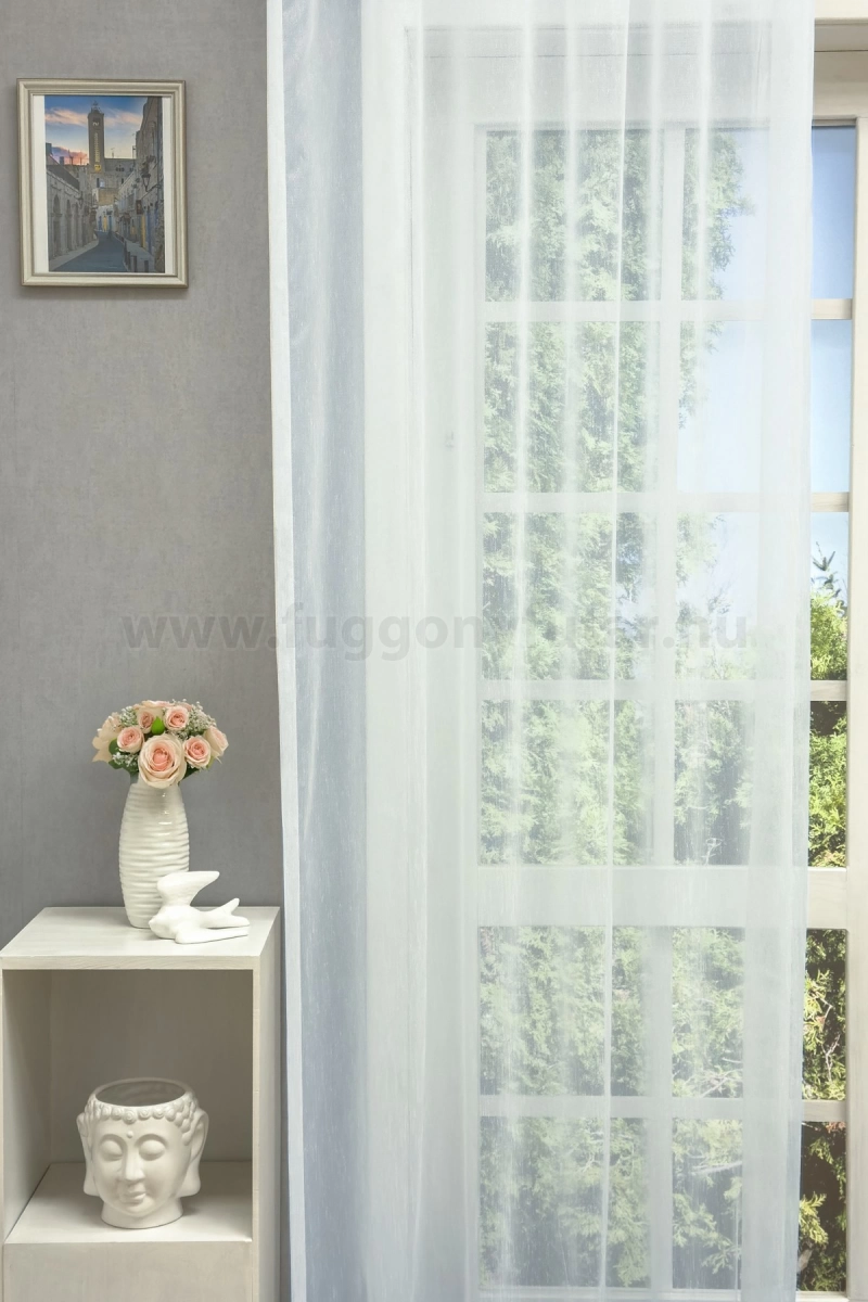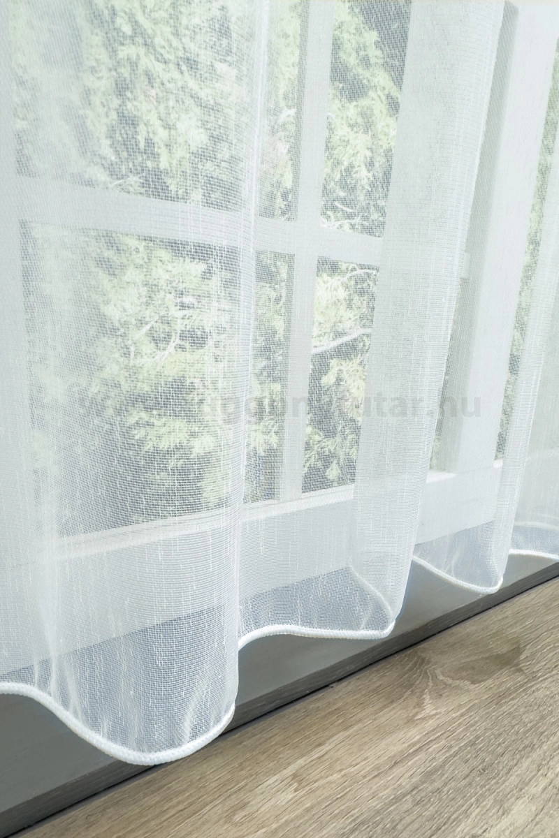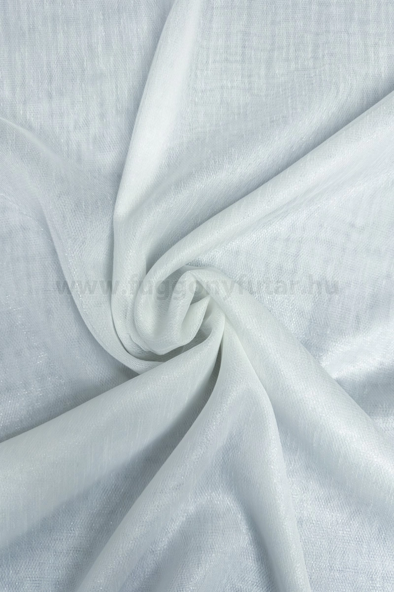 A szórt mintás anyagok izgalmas felülete bármely helyiségben jól mutat Az anyag teljes felületén elszórtan megjelenő ritkább-sűrűbb szálbeszövések izgalmas felületet hoznak létre. Bármilyen, színben harmonizáló, mintás anyagot remekül párosíthatunk hozzá. A fehér szín légies és világos, fényt hoz a szobába A fehér a világosság és a tisztaság színe, egész nap érezhetjük a friss tavaszi szellő simogatását, ha egy szép fehér függöny díszíti az ablakunkat. A fehér színű fényáteresztő függönyöket bármilyen színű sötétítő függönnyel kombinálhatjuk, de a szoba falának színét mindig vegyük figyelembe.Diszkrét csillogás elegáns megjelenéssel A csillámos szállal átszőtt függönyök finoman tükrözik a fényt, így visszafogott, mégis látványos hatást keltenek. Lágy ragyogásuk elegánsan kiemeli az ablakot, legyen szó modern, klasszikus vagy glamour enteriőrről.Ez a függöny többféle lakberendezési stílushoz is jól illeszthető Ez a függöny több lakberendezési irányzathoz is tökéletesen illeszkedik – legyen szó az Art deco ragyogásáról, a klasszikus eleganciáról vagy a glamour luxusáról. Anyaga diszkréten simul bele a térbe, miközben kiemeli a helyiség hangulatát. Ideális választás, ha olyan textilt keresünk, amely rugalmasan alkalmazkodik a meglévő bútorokhoz és kiegészítőkhöz.Anyaga: jacquard Csipkekötéshez hasonló technikával készült anyag, melyet elsősorban a romantikus vagy klasszikus lakberendezési stílus kedvelőinek ajánlunk. Nem szükséges különösebben vasalni , mosás után elég nedvesen felfüggeszteni, súlya miatt simára szárad (ahogy szokták mondani, "kihúzza" magát). 1.5x-es ráncolással ajánljuk.Terasz ajtókhoz, nagyobb ablakok függönyözéséhez jól használható A karnistól a felső szegéshez szükséges anyagot beleszámítva legfeljebb 308 cm hosszú függönyt lehet belőle varrni, ez alatt bármilyen méretben elkészítjük. Méreténél fogva alkalmas lehet terasz- és erkélyajtók, nagy belmagasságú helyiségek valamint normál ablakok függönyözésére is. A függöny aljába gyárilag varrt ólomzsinór megfelelő esést kölcsönöz a függönynek, megakadályozza az indokolatlan fellebbenést és az apróbb ráncokat is kisimítja.