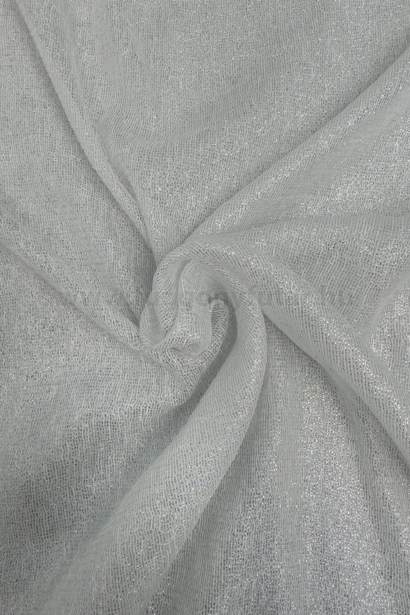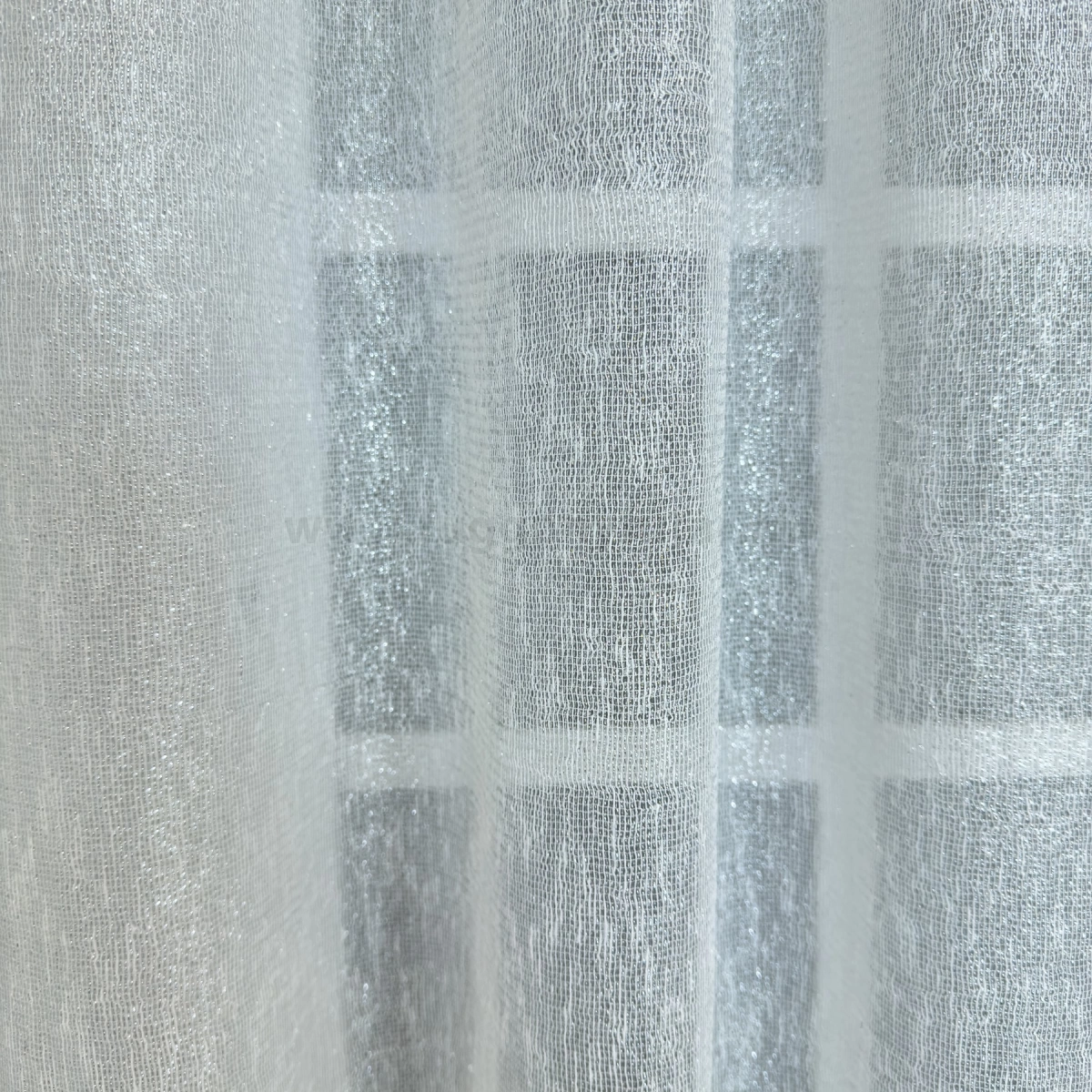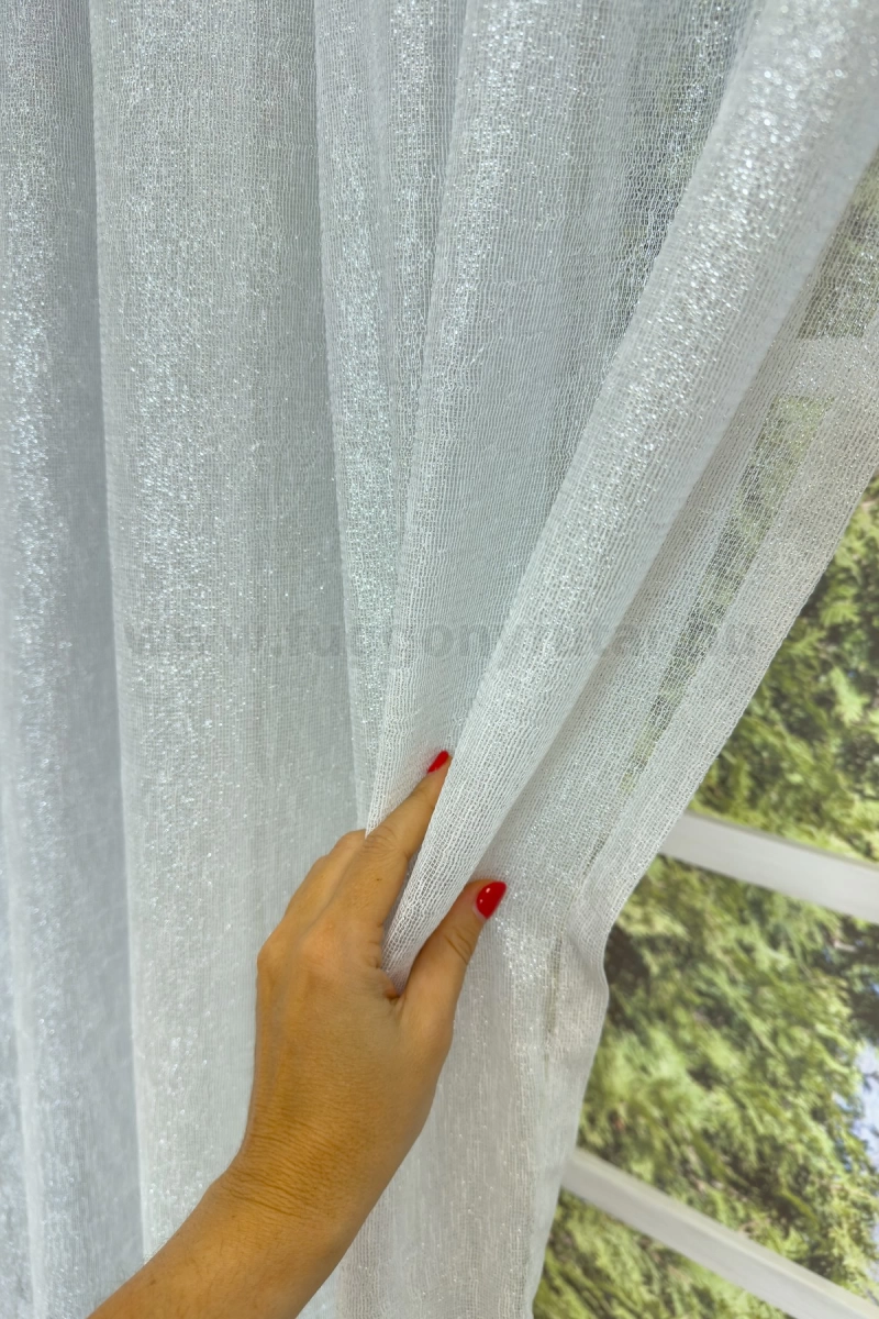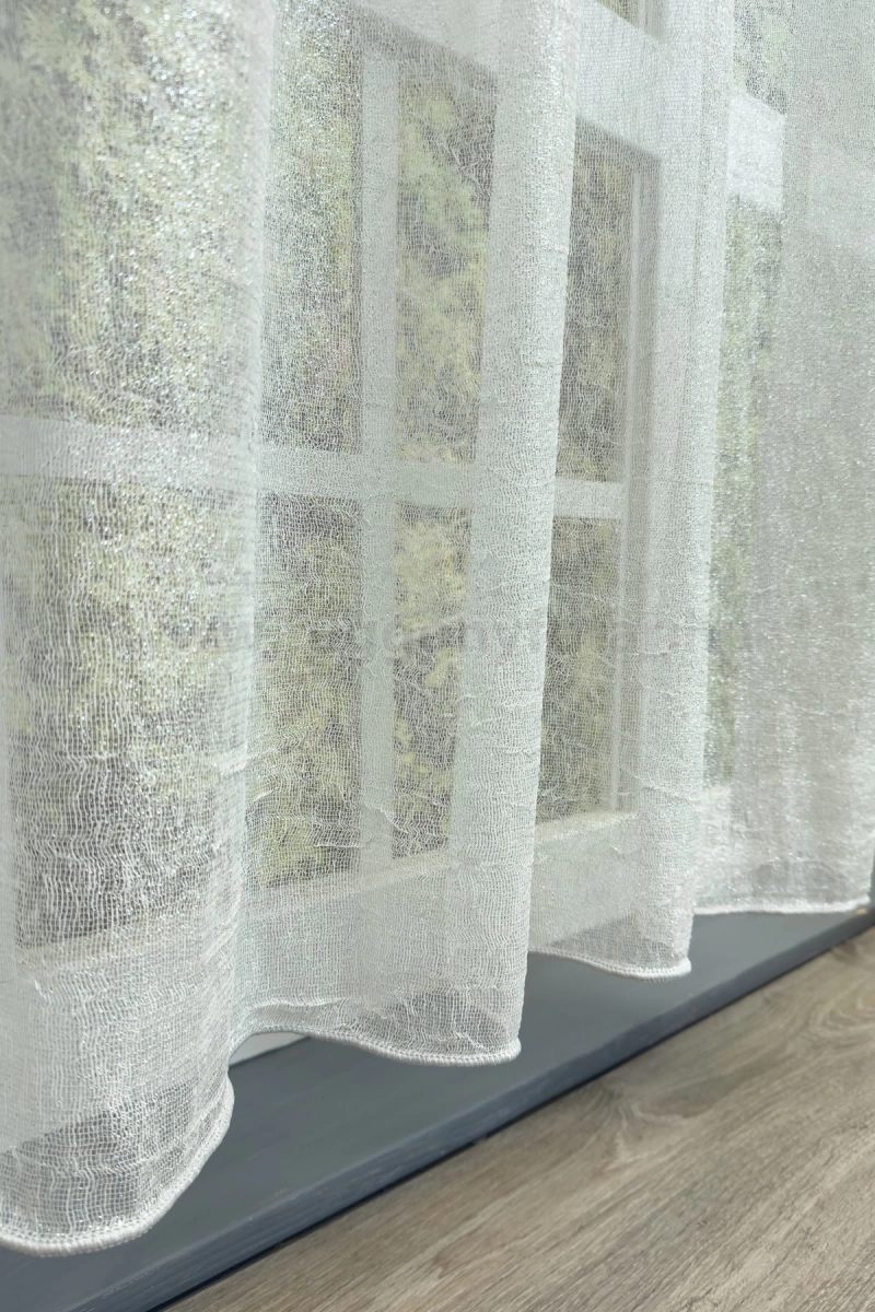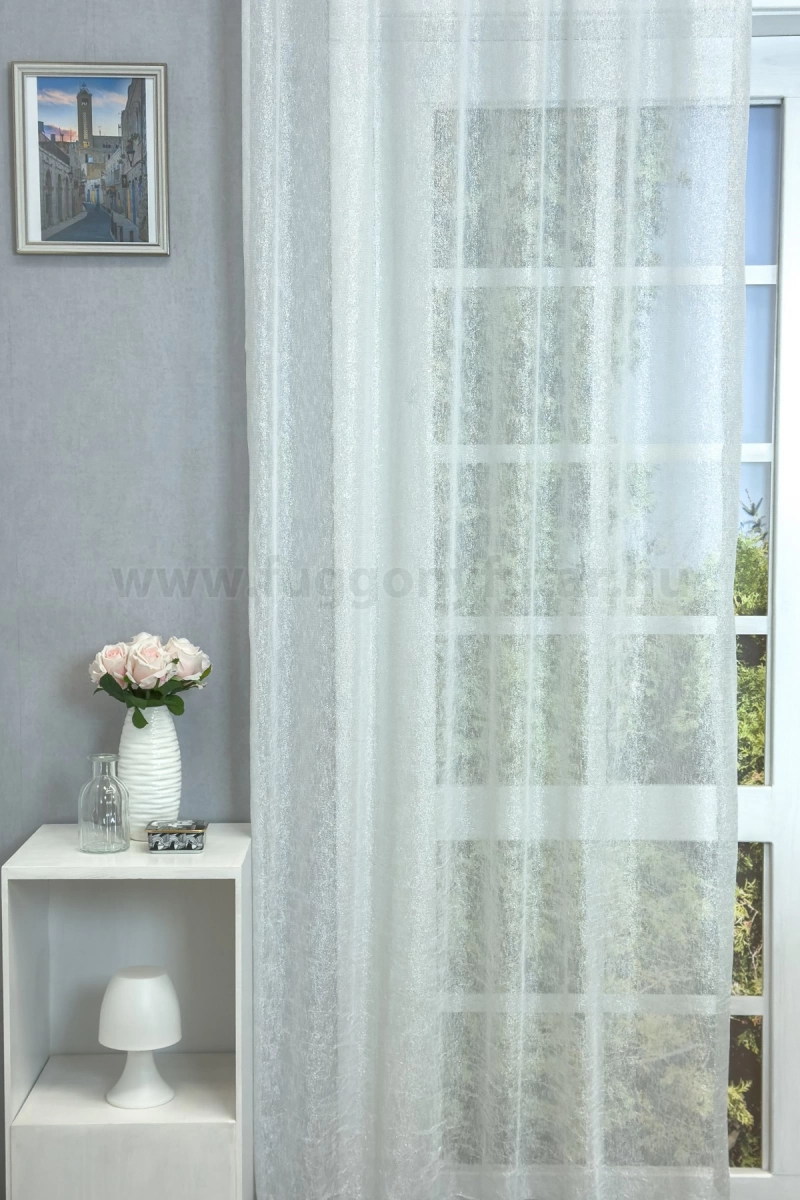 Reims - Fehér-ezüst csillogó szálbeszövéses lágy esésű sablé függöny, 280 cm - egyedi méretre varrjuk!