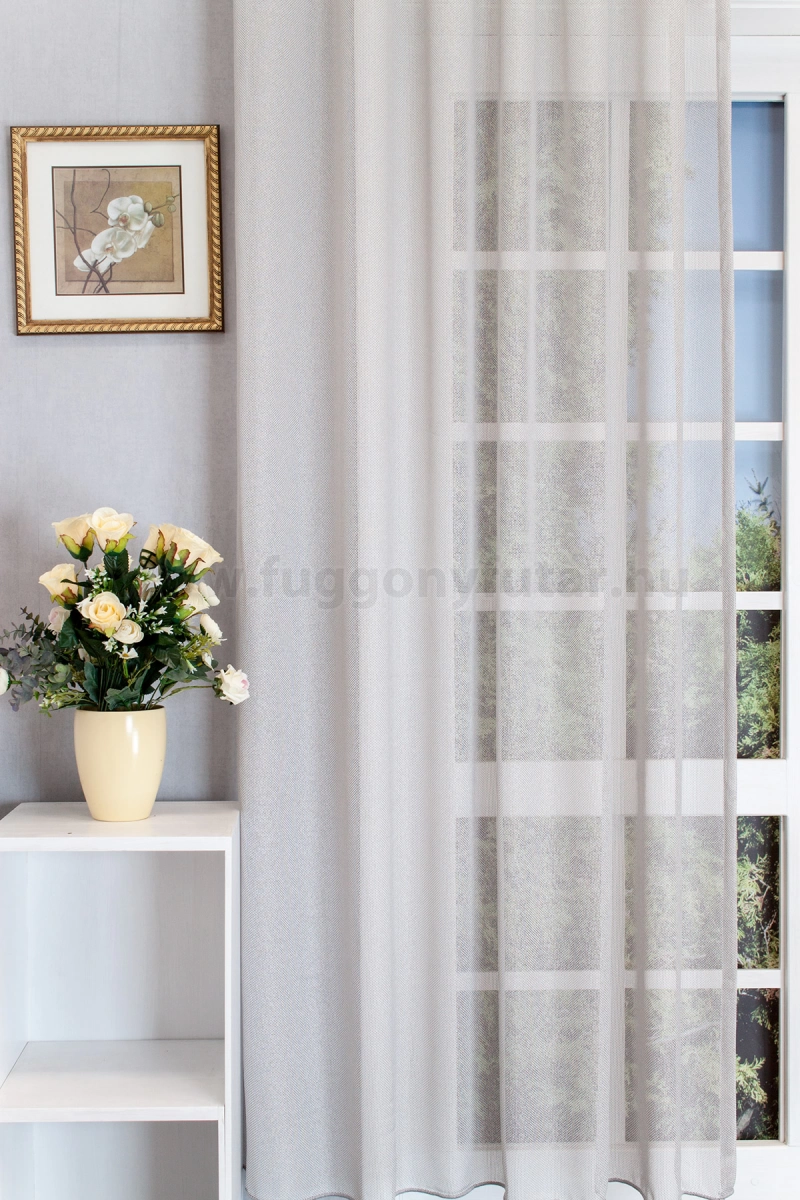 Különleges „ mágikus”tulajdonsága, a nagy szakító szilárdsága, a szálhúzódások könnyen helyre igazíthatóak.„Macskaállónak” is nevezik hiszen a cicák karma sem károsítja. Vastagabb fonalakból szőtt, selymes fényű, puha tapintású így rusztikus, vagy minimál stílusú lakásokba is jól illeszthető. Alul ólomzsinór biztosít kellő tartást. Kímélő mosás után helyére akasztva szárítható, gőzölős vasalóval simítható. A minta nélküli anyagok univerzálisak, jól passzolnak bármihez A minta nélküli anyagokhoz bármilyen színben harmonizáló mintás anyagot, tapétát remekül párosíthatunk. Semleges és elegáns szürke A szürke semleges és elegáns. Stabilitást képvisel. Bármely élénk színnel jól kombinálható, de azt ne vigyük túlzásba. A szürke színű fényáteresztő függönyökhöz általában a narancs, sötétkék, bordó, lila és szürke színű sötétítő és dekorfüggönyök illenek legjobban.Ez a függöny többféle lakberendezési stílushoz is jól illeszthető Ez a függöny több lakberendezési irányzathoz is tökéletesen illeszkedik – legyen szó a minimál letisztultságról vagy az industrial stílus karakteréről. Anyaga diszkréten simul bele a térbe, miközben kiemeli a helyiség hangulatát. Ideális választás, ha olyan textilt keresünk, amely rugalmasan alkalmazkodik a meglévő bútorokhoz és kiegészítőkhöz.Anyaga: struktúr Vastagabb szálakból, hálószövéssel készült függöny anyag. Akár szúnyoghálóként is alkalmazható. 1.5x-es ráncolással ajánljuk.Terasz ajtókhoz, nagyobb ablakok függönyözéséhez jól használható A karnistól a felső szegéshez szükséges anyagot beleszámítva legfeljebb 313 cm hosszú függönyt lehet belőle varrni, ez alatt bármilyen méretben elkészítjük. Méreténél fogva alkalmas lehet terasz- és erkélyajtók, nagy belmagasságú helyiségek valamint normál ablakok függönyözésére is. A függöny aljába gyárilag varrt ólomzsinór megfelelő esést kölcsönöz a függönynek, megakadályozza az indokolatlan fellebbenést és az apróbb ráncokat is kisimítja.Vasalást kevésbé igénylő anyag Az anyag kevesebb vasalást igényel, mint az átlag függöny. Sokszor elég, ha mosás után még nedvesen a helyükre akasztjuk, így kilógva magát a ráncok kisimulnak és a függönyünk teljes pompájában ragyog!