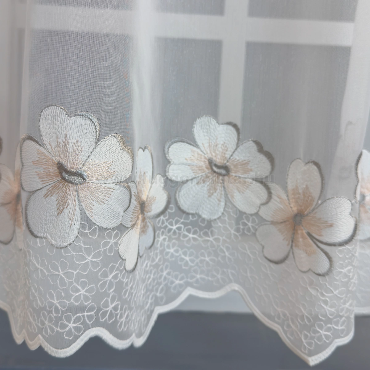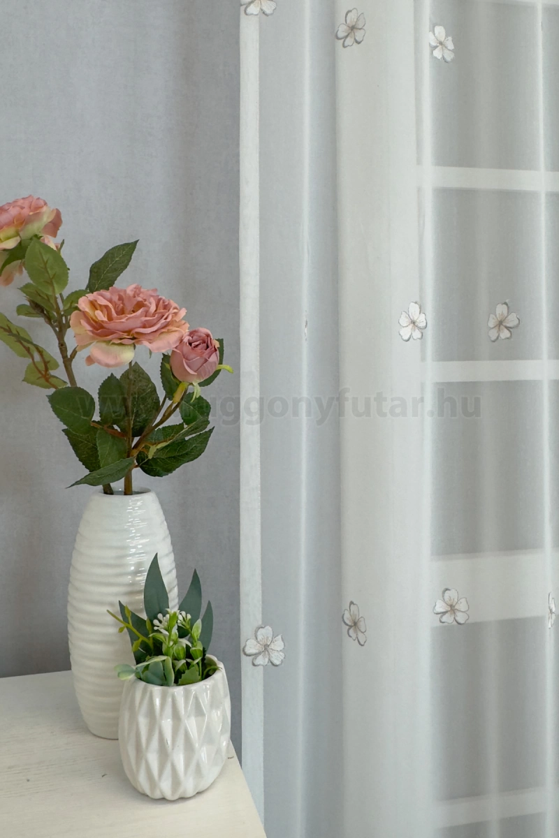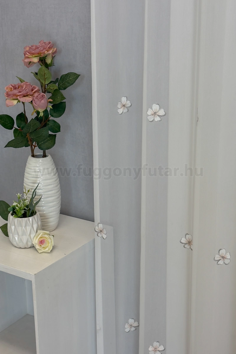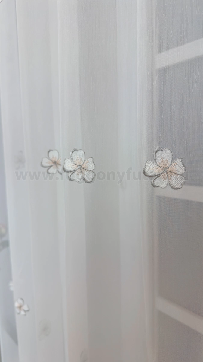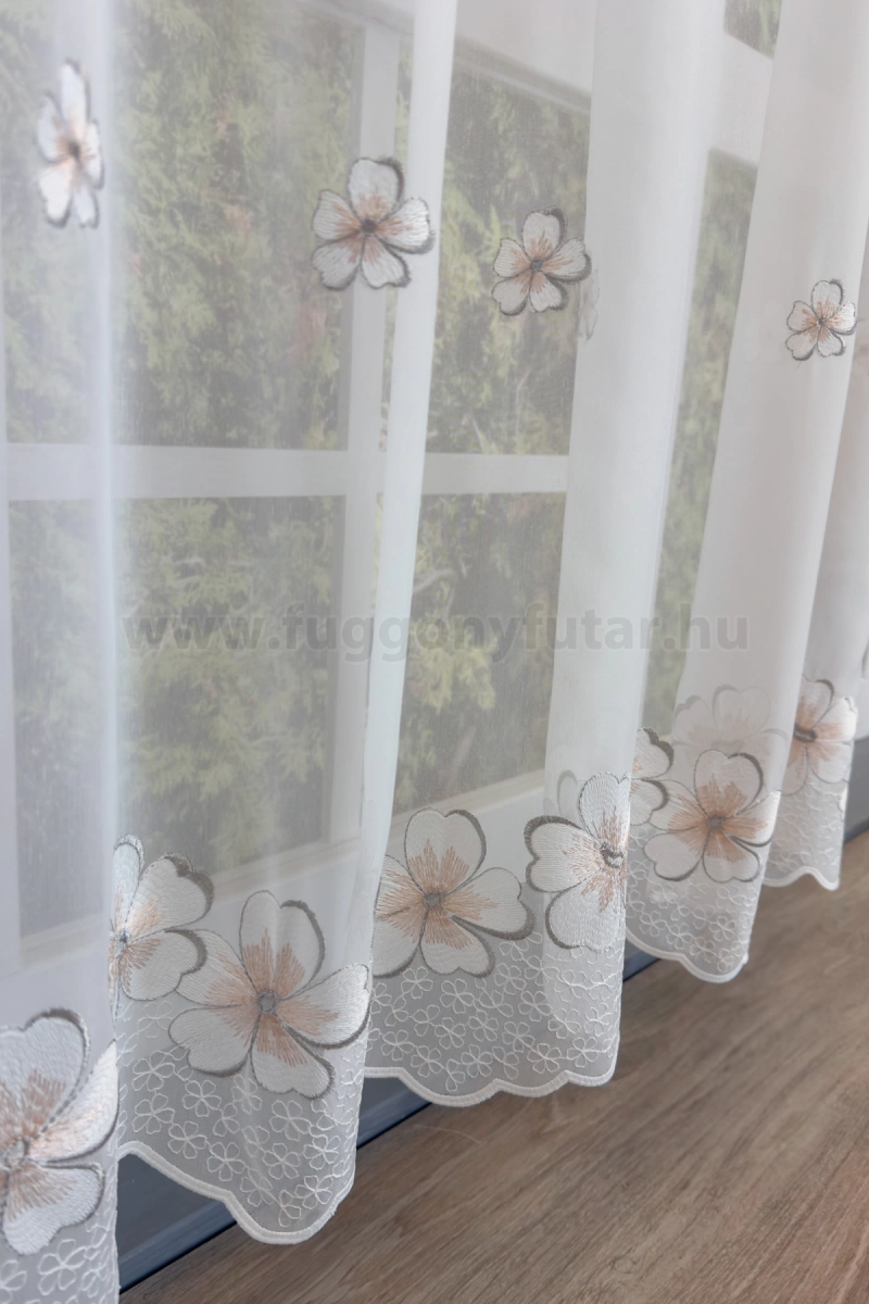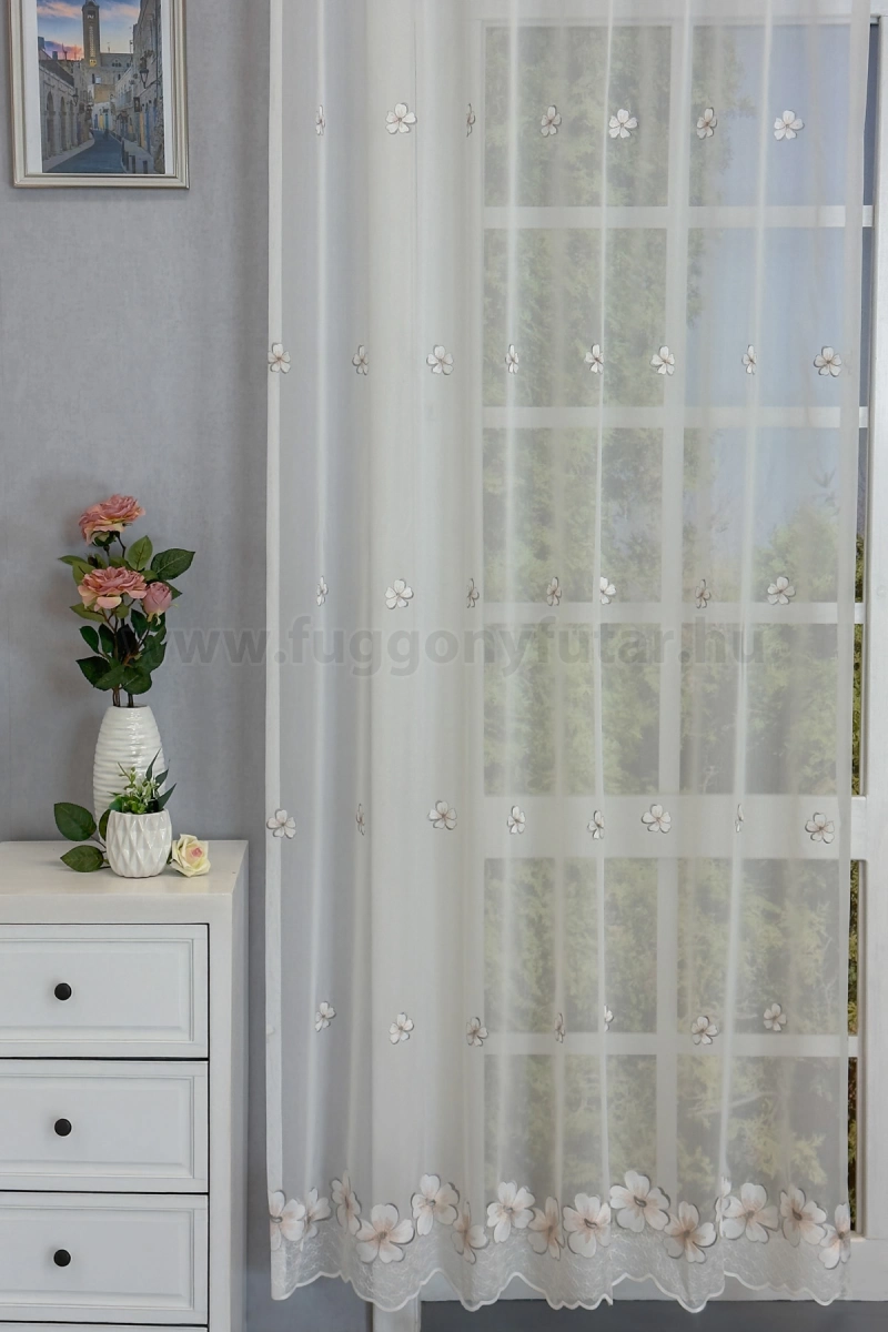 Szumida-Elefántcsont színű hímzett virágos batiszt függöny, 200 cm - egyedi méretre varrjuk!