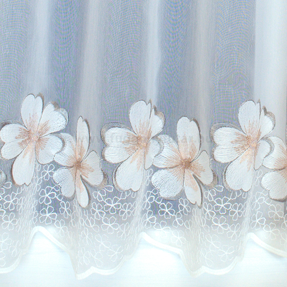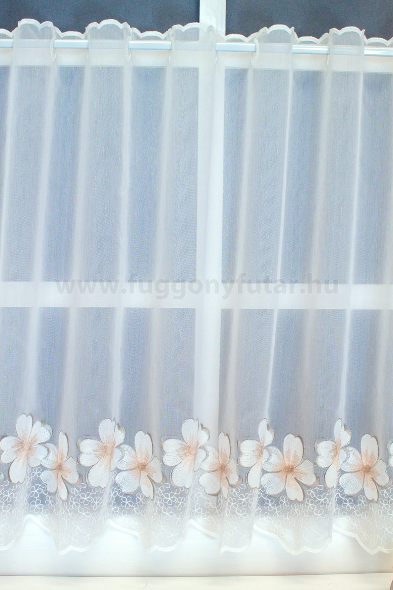 Hímzett ezüst és rózsaszín virágos batiszt vitrázs függöny.Teremtsünk romantikus hangulatot szobánkba ezzel a kellemes, virágmintás anyaggal! A virágminták vagy növényi minták mindig is népszerűek voltak a textiltervezők és lakberendezők körében, hiszen barátságossá és természetközelivé teszik otthonunkat. Egyszínű, színben harmonizáló textilekkel kombinálva romantikus stílust és kiegyensúlyozott megjelenést kölcsönözhetünk helyiségünknek. A bézs szín kellemes melegséggel árasztja el szobánkat Ez a meleg, természetes árnyalatú anyag remekül mutat bármilyen térben, amit otthonos, meleg színekkel szeretnénk berendezni. A bézs színű fényáteresztő függönyökhöz általában a sötétbarna, sötétkék, bordó, zöld, narancs, lila és szürke színű sötétítő és dekorfüggönyök illenek legjobban.Ez a függöny vintage lakberendezési stílushoz jól illeszthető Ez a függöny tökéletesen illeszkedik a vintage stílus nosztalgiájához. Anyaga diszkréten simul bele a térbe, miközben kiemeli a helyiség hangulatát. Ideális választás, ha olyan textilt keresünk, amely rugalmasan alkalmazkodik a meglévő bútorokhoz és kiegészítőkhöz.Anyaga: batiszt Vékony, de kevésbé áttetsző, sűrűn szövött anyag, mely tapintásra a leginkább közelít a pamutvászonhoz. 1.5x-es ráncolással ajánljuk.Vitrázsrudakhoz alkalmas függöny A függöny 60 cm magas. Méreténél fogva ún. kávéházi vagy vitrázs függgönyként használható, az ablak egy részének takarására alkalmas. Alsó szegélye hullámos, melyhez nagyobb díszítősáv (bordűr) párosul, ólomzsinór nem található benne.