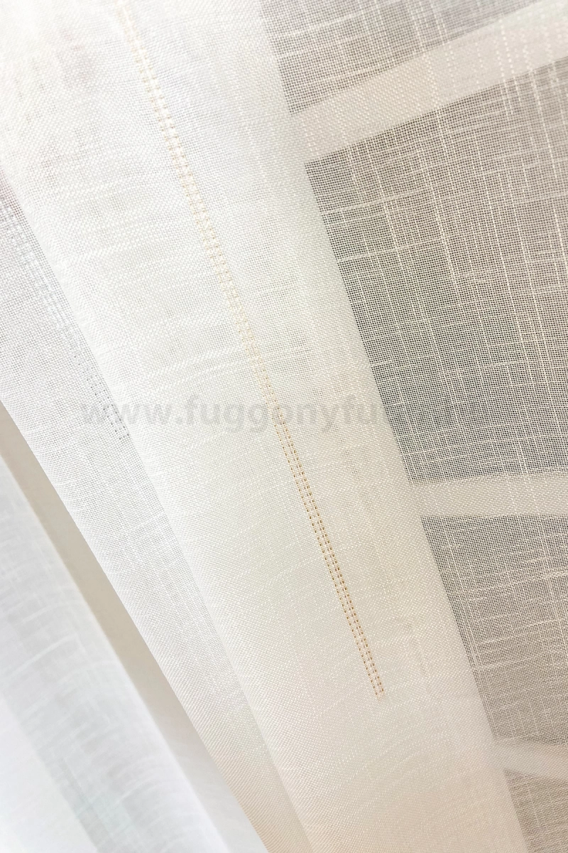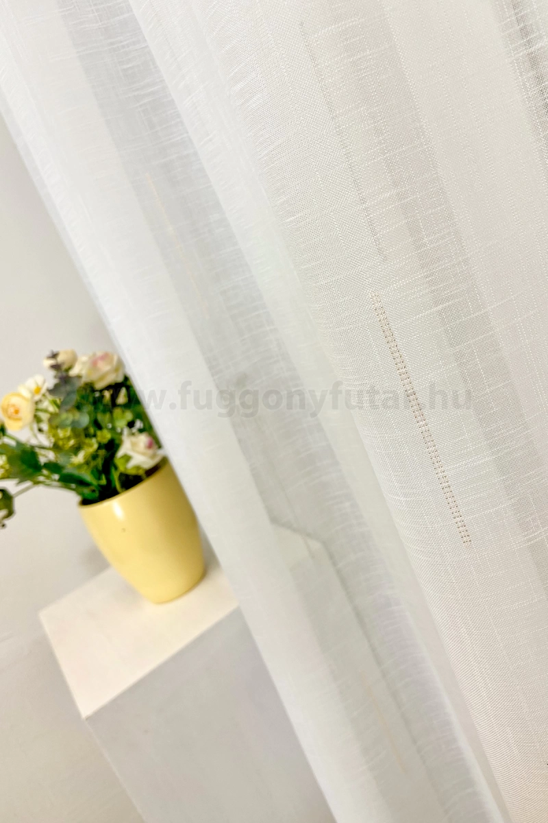 Modern lakásokba javasoljuk ezt az elszórt mintákkal díszített függönyt. Az erősebb szálú, ekrü színű sablet alapon nagyon szépen mutatnak a bele szövött, nyírt, fényes bronz és ezüst függőleges csíkok, melyek erősítik a függöny tartását is. Kímélő mosás után helyére akasztva szárítható, gőzölős vasalóval simítható.A függőleges csíkok izgalmassá teszik a teret Az ilyen függőleges csíkozású anyagokhoz válasszunk egyszínű, szórt vagy virágmintás sötétítőt. Ez a mintázat optikailag nyújtja a teret. Semleges és elegáns szürke A szürke semleges és elegáns. Stabilitást képvisel. Bármely élénk színnel jól kombinálható, de azt ne vigyük túlzásba. A szürke színű fényáteresztő függönyökhöz általában a narancs, sötétkék, bordó, lila és szürke színű sötétítő és dekorfüggönyök illenek legjobban.Ez a függöny többféle lakberendezési stílushoz is jól illeszthető Ez a függöny több lakberendezési irányzathoz is tökéletesen illeszkedik – legyen szó a minimál letisztultságról vagy a skandináv egyszerűségről. Anyaga diszkréten simul bele a térbe, miközben kiemeli a helyiség hangulatát. Ideális választás, ha olyan textilt keresünk, amely rugalmasan alkalmazkodik a meglévő bútorokhoz és kiegészítőkhöz.Anyaga: sablé Változó vastagságú szálakból szőtt anyag. Kevésbé hajlamos a gyűrődésre , mint a voile. 1.5x-es ráncolással ajánljuk.Terasz ajtókhoz, nagyobb ablakok függönyözéséhez jól használható A karnistól a felső szegéshez szükséges anyagot beleszámítva legfeljebb 298 cm hosszú függönyt lehet belőle varrni, ez alatt bármilyen méretben elkészítjük. Méreténél fogva alkalmas lehet terasz- és erkélyajtók, nagy belmagasságú helyiségek valamint normál ablakok függönyözésére is. A függöny aljába gyárilag varrt ólomzsinór megfelelő esést kölcsönöz a függönynek, megakadályozza az indokolatlan fellebbenést és az apróbb ráncokat is kisimítja.