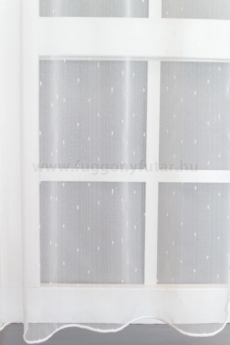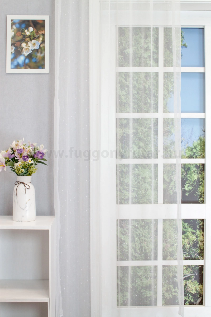 Hagyományos, és a modern minimalista stílushoz is jól használható ez a fehér sablet függöny. Puha fonalai kellemes tapintásúak, a beleszőtt sodrott szálak erősítik, jó tartást biztosítanak, változatosabbá teszik a felületét. Alul ólomzsinór szegélyezi. Jó formatartó, nehezen gyűrődik, kímélő mosás után helyére akasztva szárítható, gőzölős vasalóval simítható.A szórt mintás anyagok izgalmas felülete bármely helyiségben jól mutat Az anyag teljes felületén elszórtan megjelenő ritkább-sűrűbb szálbeszövések izgalmas felületet hoznak létre. Bármilyen, színben harmonizáló, mintás anyagot remekül párosíthatunk hozzá. A fehér szín légies és világos, fényt hoz a szobába A fehér a világosság és a tisztaság színe, egész nap érezhetjük a friss tavaszi szellő simogatását, ha egy szép fehér függöny díszíti az ablakunkat. A fehér színű fényáteresztő függönyöket bármilyen színű sötétítő függönnyel kombinálhatjuk, de a szoba falának színét mindig vegyük figyelembe.Ez a függöny többféle lakberendezési stílushoz is jól illeszthető Ez a függöny több lakberendezési irányzathoz is tökéletesen illeszkedik – legyen szó a minimál letisztultságról, a skandináv egyszerűségről vagy a klasszikus eleganciáról. Anyaga diszkréten simul bele a térbe, miközben kiemeli a helyiség hangulatát. Ideális választás, ha olyan textilt keresünk, amely rugalmasan alkalmazkodik a meglévő bútorokhoz és kiegészítőkhöz.A légies elegancia harmóniája A nyár típusú anyagok a kifinomult, hűvös eleganciát képviselik. Színvilágukban a hideg pasztellek, mint a levendula, a menta, a púderrózsaszín és a törtfehérek uralkodnak. Könnyed, szellős anyagaikkal nyugalmat és szofisztikált hangulatot teremtenek. Ideális választás a higgadt, elegáns személyiségeknek. Anyaga diszkréten simul bele a térbe, miközben kiemeli a helyiség hangulatát. Ideális választás, ha olyan textilt keresünk, amely rugalmasan alkalmazkodik a meglévő bútorokhoz és kiegészítőkhöz.Anyaga: sablé Változó vastagságú szálakból szőtt anyag. Kevésbé hajlamos a gyűrődésre , mint a voile. 1.5x-es ráncolással ajánljuk.Normál ablakok függönyözéséhez használható A karnistól a felső szegéshez szükséges anyagot beleszámítva legfeljebb 218 cm hosszú függönyt lehet belőle varrni, ez alatt bármilyen méretben elkészítjük. Méreténél fogva normál méretű ablakok függönyözésére alkalmas. A függöny aljába gyárilag varrt ólomzsinór megfelelő esést kölcsönöz a függönynek, megakadályozza az indokolatlan fellebbenést és az apróbb ráncokat is kisimítja.Vasalást kevésbé igénylő anyag Az anyag kevesebb vasalást igényel, mint az átlag függöny. Sokszor elég, ha mosás után még nedvesen a helyükre akasztjuk, így kilógva magát a ráncok kisimulnak és a függönyünk teljes pompájában ragyog!