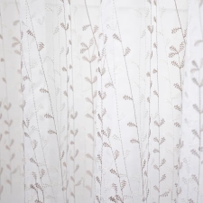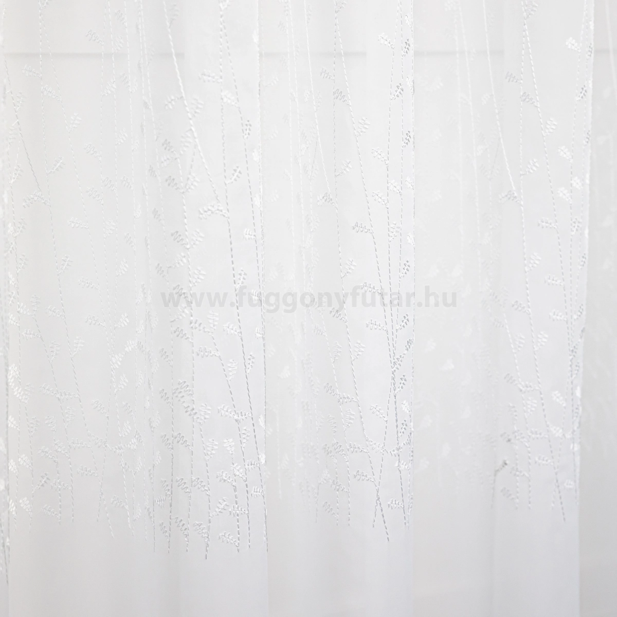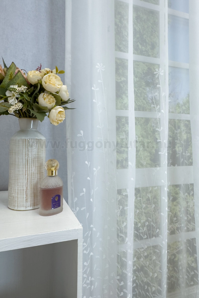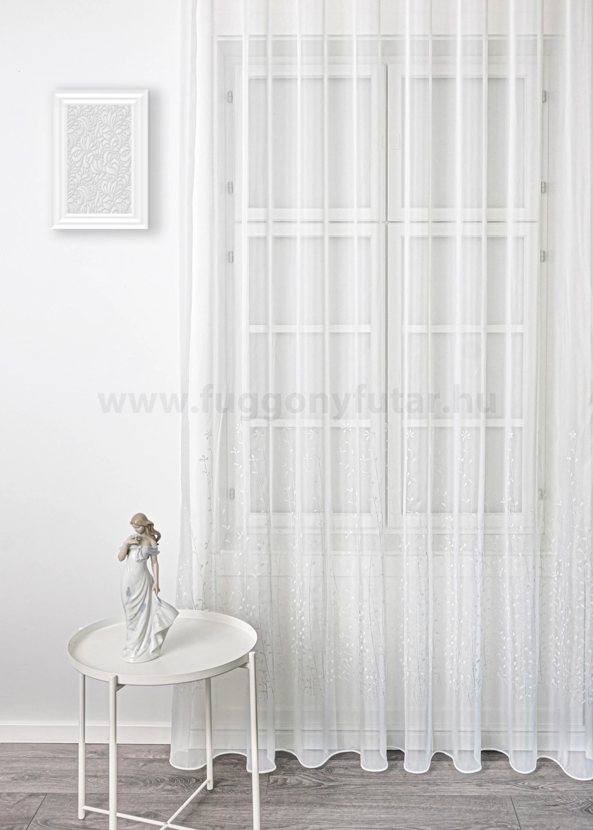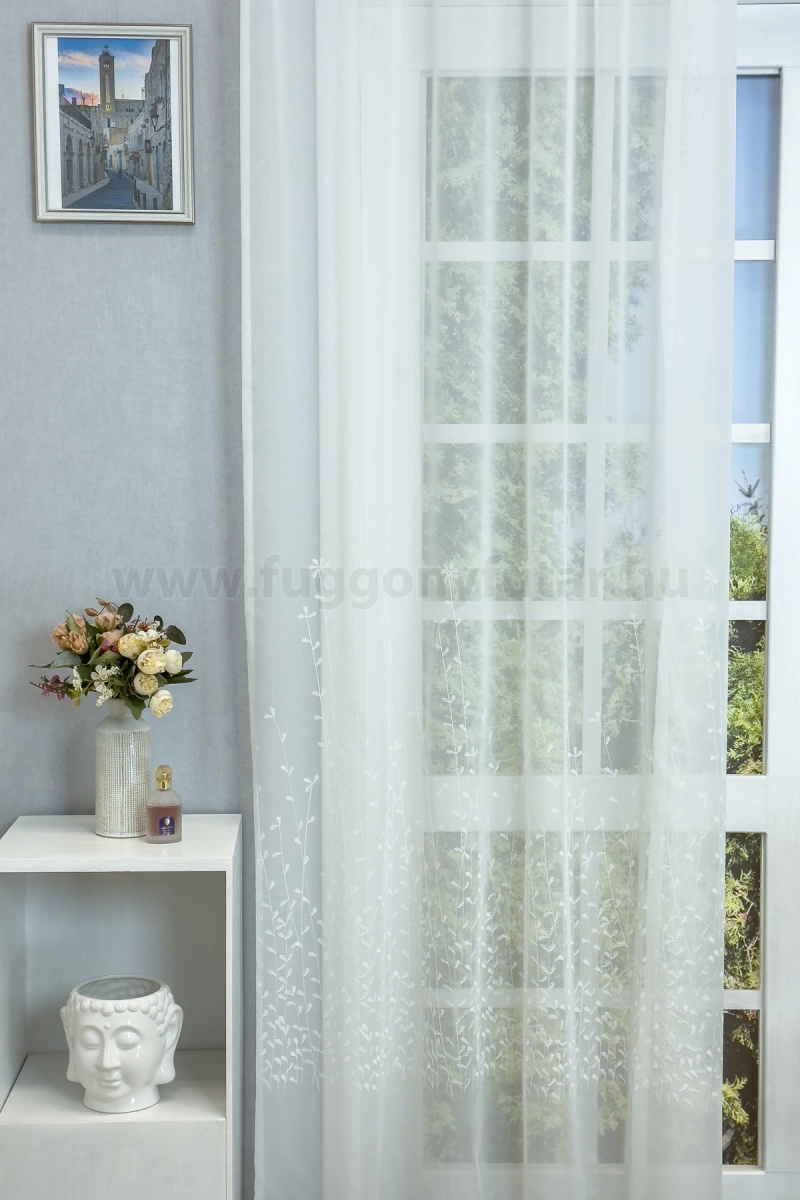 Teremtsünk romantikus hangulatot szobánkba ezzel a kellemes, növényi mintás anyaggal! A növényi minták mindig is népszerűek voltak a textiltervezők és lakberendezők körében, hiszen barátságossá és természetközelivé teszik otthonunkat. Egyszínű, színben harmonizáló textilekkel kombinálva romantikus stílust és kiegyensúlyozott megjelenést kölcsönözhetünk helyiségünknek. A fehér szín légies és világos, fényt hoz a szobába A fehér a világosság és a tisztaság színe, egész nap érezhetjük a friss tavaszi szellő simogatását, ha egy szép fehér függöny díszíti az ablakunkat. A fehér színű fényáteresztő függönyöket bármilyen színű sötétítő függönnyel kombinálhatjuk, de a szoba falának színét mindig vegyük figyelembe.Ez a függöny többféle lakberendezési stílushoz is jól illeszthető Ez a függöny több lakberendezési irányzathoz is tökéletesen illeszkedik – legyen szó a mediterrán könnyedségről, a skandináv egyszerűségről vagy a vintage nosztalgiáról. Anyaga diszkréten simul bele a térbe, miközben kiemeli a helyiség hangulatát. Ideális választás, ha olyan textilt keresünk, amely rugalmasan alkalmazkodik a meglévő bútorokhoz és kiegészítőkhöz.Anyaga: voile Vékony, könnyed, fátyolszerű anyag . Az organzához képest vastagabb szálakból szövik, így kevésbé átlátszó, nehezebben gyűrődik, bár vasalást azért igényel (gőzölős vasalóval viszonylag könnyen, sérülésmentesen vasalható). 1.5x v. 2x-es ráncolással ajánljuk.Terasz ajtókhoz, nagyobb ablakok függönyözéséhez jól használható A karnistól a felső szegéshez szükséges anyagot beleszámítva legfeljebb 293 cm hosszú függönyt lehet belőle varrni, ez alatt bármilyen méretben elkészítjük. Méreténél fogva alkalmas lehet terasz- és erkélyajtók, nagy belmagasságú helyiségek valamint normál ablakok függönyözésére is. A függöny aljába gyárilag varrt ólomzsinór megfelelő esést kölcsönöz a függönynek, megakadályozza az indokolatlan fellebbenést és az apróbb ráncokat is kisimítja.