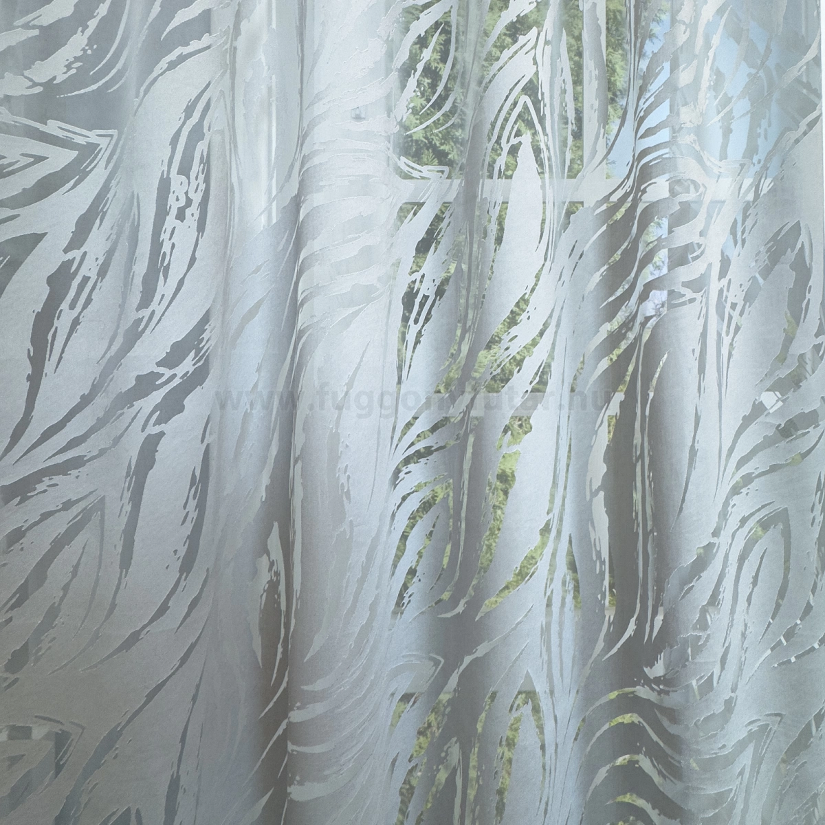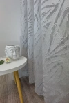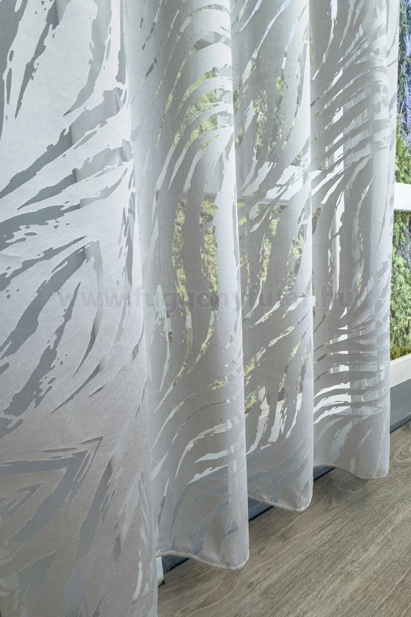 Sandra - Szürke színű levélmintás maratott organza függöny, 300 cm - egyedi méretre varrjuk!
