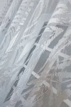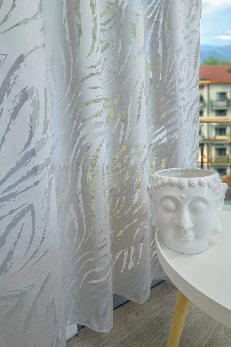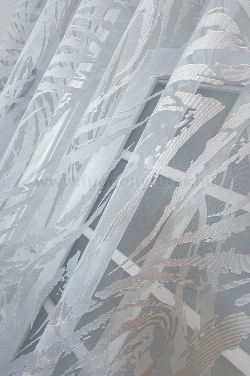 Vékony, laza szerkezetű organza anyag. Fényáteresztő függöny céljára legalább 2, vagy 2,5x-es mennyiségben mutat jól az ablakon. Kímélő mosást és vasalást igényel.