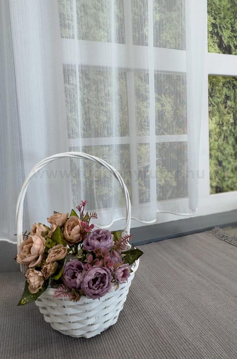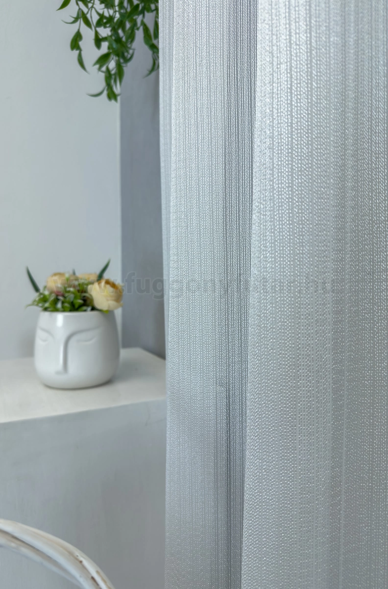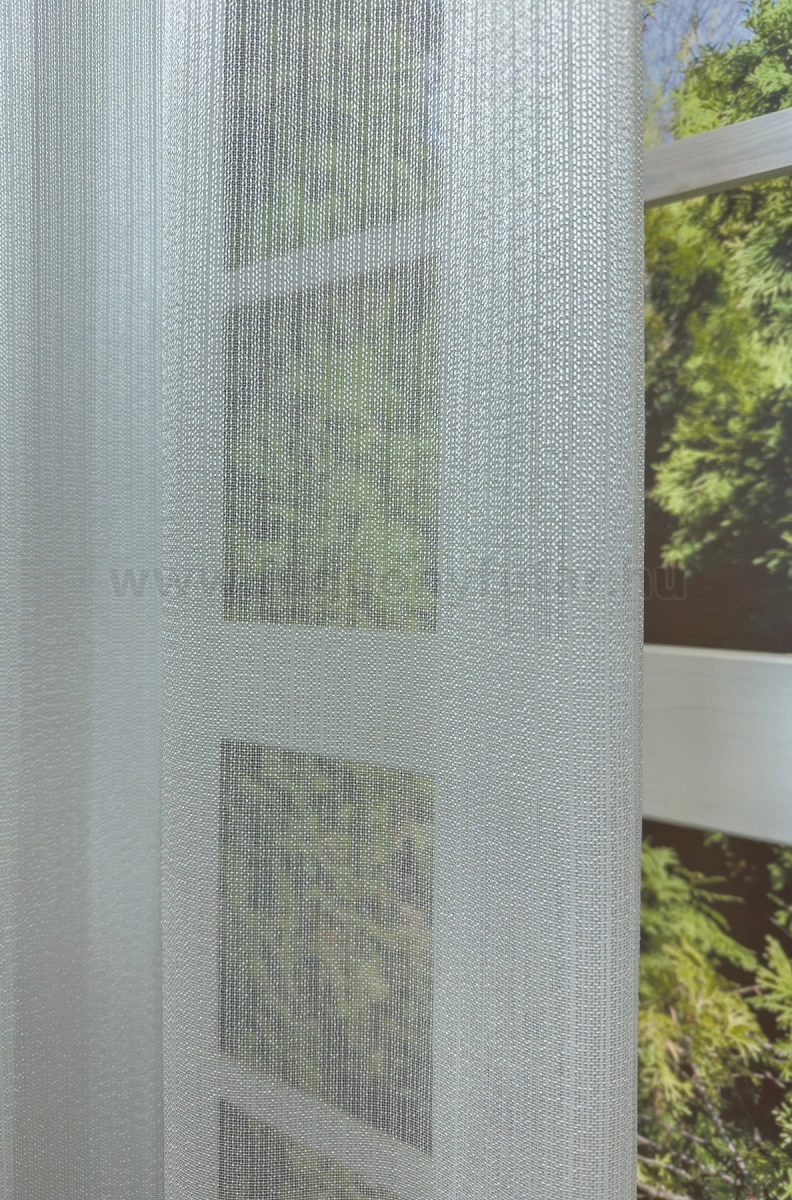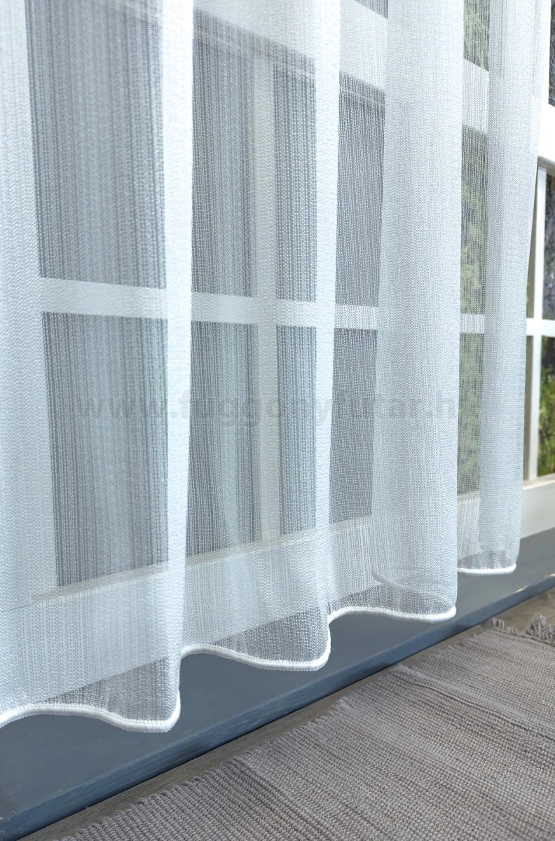 Fehér színű, szatén fényű szállal szövött csillogó sablé függöny.A függőleges csíkok izgalmassá teszik a teret Az ilyen függőleges csíkozású anyagokhoz válasszunk egyszínű, szórt vagy virágmintás sötétítőt. Ez a mintázat optikailag nyújtja a teret. A fehér szín légies és világos, fényt hoz a szobába A fehér a világosság és a tisztaság színe, egész nap érezhetjük a friss tavaszi szellő simogatását, ha egy szép fehér függöny díszíti az ablakunkat. A fehér színű fényáteresztő függönyöket bármilyen színű sötétítő függönnyel kombinálhatjuk, de a szoba falának színét mindig vegyük figyelembe.Ez a függöny többféle lakberendezési stílushoz is jól illeszthető Ez a függöny több lakberendezési irányzathoz is tökéletesen illeszkedik – legyen szó az Art deco ragyogásáról, a glamour luxusáról, a klasszikus eleganciáról vagy a skandináv egyszerűségről. Anyaga diszkréten simul bele a térbe, miközben kiemeli a helyiség hangulatát. Ideális választás, ha olyan textilt keresünk, amely rugalmasan alkalmazkodik a meglévő bútorokhoz és kiegészítőkhöz.Drámai és luxus hatás A tél típusú anyagok merészek, elegánsak és egy csipetnyi drámát visznek a térbe. Színvilágukban az éles kontrasztok és a mély, gazdag ékszertónusok dominálnak, mint a smaragdzöld, a zafírkék, a rubinvörös, kiegészítve a feketével, fehérrel és fémes csillogással. Ideális a magabiztos, kifinomult személyiségeknek. Anyaga diszkréten simul bele a térbe, miközben kiemeli a helyiség hangulatát. Ideális választás, ha olyan textilt keresünk, amely rugalmasan alkalmazkodik a meglévő bútorokhoz és kiegészítőkhöz.Anyaga: sablé Változó vastagságú szálakból szőtt anyag. Kevésbé hajlamos a gyűrődésre , mint a voile. 1.5x-es ráncolással ajánljuk.Terasz ajtókhoz, nagyobb ablakok függönyözéséhez jól használható A karnistól a felső szegéshez szükséges anyagot beleszámítva legfeljebb 298 cm hosszú függönyt lehet belőle varrni, ez alatt bármilyen méretben elkészítjük. Méreténél fogva alkalmas lehet terasz- és erkélyajtók, nagy belmagasságú helyiségek valamint normál ablakok függönyözésére is. A függöny aljába gyárilag varrt ólomzsinór megfelelő esést kölcsönöz a függönynek, megakadályozza az indokolatlan fellebbenést és az apróbb ráncokat is kisimítja.Vasalást kevésbé igénylő anyag Az anyag kevesebb vasalást igényel, mint az átlag függöny. Sokszor elég, ha mosás után még nedvesen a helyükre akasztjuk, így kilógva magát a ráncok kisimulnak és a függönyünk teljes pompájában ragyog!