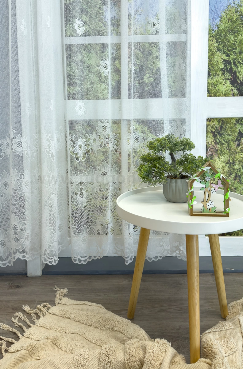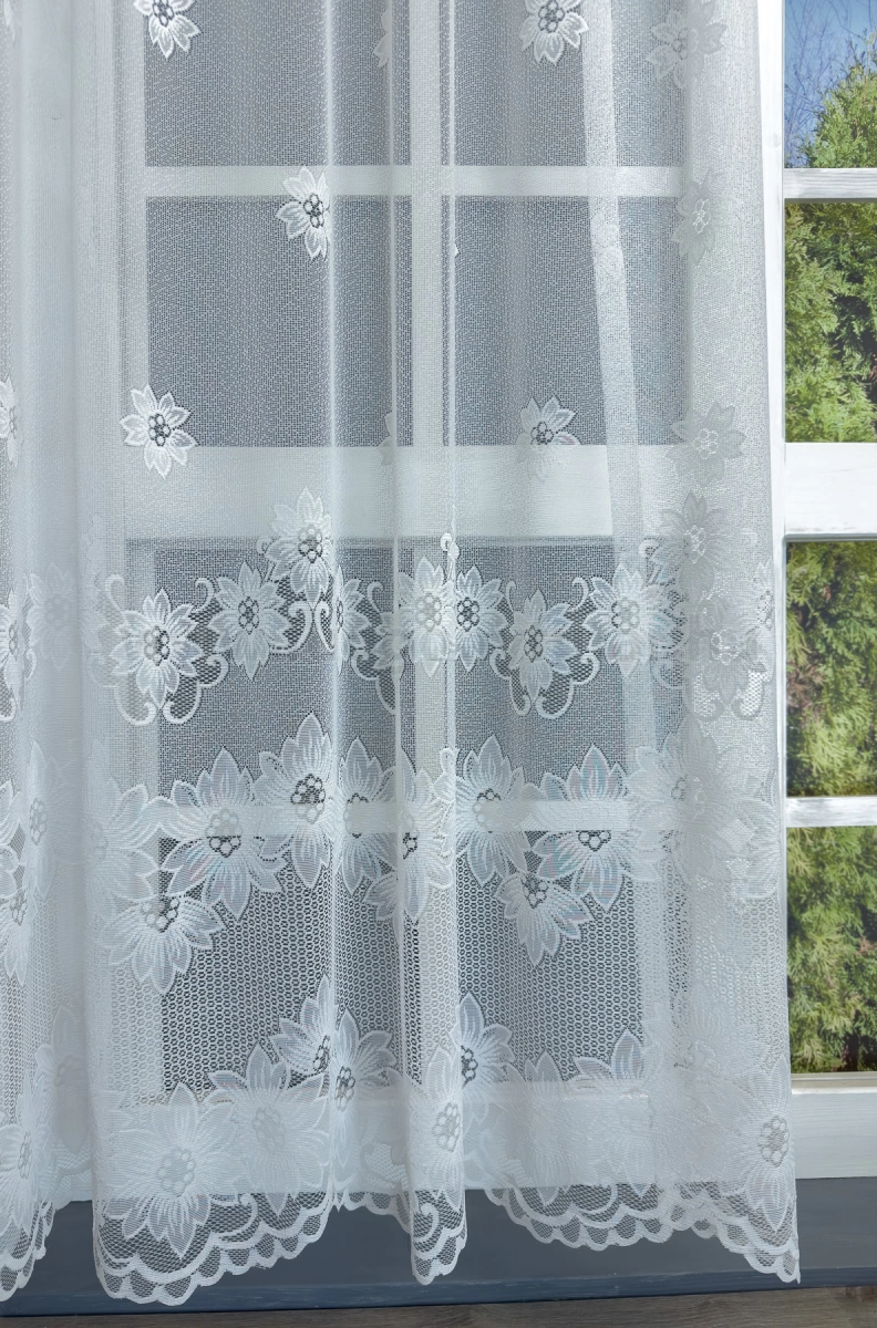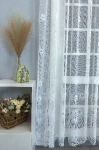 Teremtsünk romantikus hangulatot szobánkba ezzel a kellemes, virágmintás anyaggal! A virágminták vagy növényi minták mindig is népszerűek voltak a textiltervezők és lakberendezők körében, hiszen barátságossá és természetközelivé teszik otthonunkat. Egyszínű, színben harmonizáló textilekkel kombinálva romantikus stílust és kiegyensúlyozott megjelenést kölcsönözhetünk helyiségünknek. A fehér szín légies és világos, fényt hoz a szobába A fehér a világosság és a tisztaság színe, egész nap érezhetjük a friss tavaszi szellő simogatását, ha egy szép fehér függöny díszíti az ablakunkat. A fehér színű fényáteresztő függönyöket bármilyen színű sötétítő függönnyel kombinálhatjuk, de a szoba falának színét mindig vegyük figyelembe.Ez a függöny többféle lakberendezési stílushoz is jól illeszthető Ez a függöny több lakberendezési irányzathoz is tökéletesen illeszkedik – legyen szó a klasszikus eleganciáról vagy a vintage nosztalgiáról. Anyaga diszkréten simul bele a térbe, miközben kiemeli a helyiség hangulatát. Ideális választás, ha olyan textilt keresünk, amely rugalmasan alkalmazkodik a meglévő bútorokhoz és kiegészítőkhöz.Anyaga: jacquard Csipkekötéshez hasonló technikával készült anyag, melyet elsősorban a romantikus vagy klasszikus lakberendezési stílus kedvelőinek ajánlunk. Nem szükséges különösebben vasalni , mosás után elég nedvesen felfüggeszteni, súlya miatt simára szárad (ahogy szokták mondani, "kihúzza" magát). 1.5x-es ráncolással ajánljuk.Normál ablakok függönyözéséhez használható A karnistól a felső szegéshez szükséges anyagot beleszámítva legfeljebb 218 cm hosszú függönyt lehet belőle varrni, ez alatt bármilyen méretben elkészítjük. Méreténél fogva normál méretű ablakok függönyözésére alkalmas. Alsó szegélye hullámos, melyhez nagyobb díszítősáv (bordűr) párosul, ólomzsinór nem található benne.Vasalást kevésbé igénylő anyag Az anyag kevesebb vasalást igényel, mint az átlag függöny. Sokszor elég, ha mosás után még nedvesen a helyükre akasztjuk, így kilógva magát a ráncok kisimulnak és a függönyünk teljes pompájában ragyog!