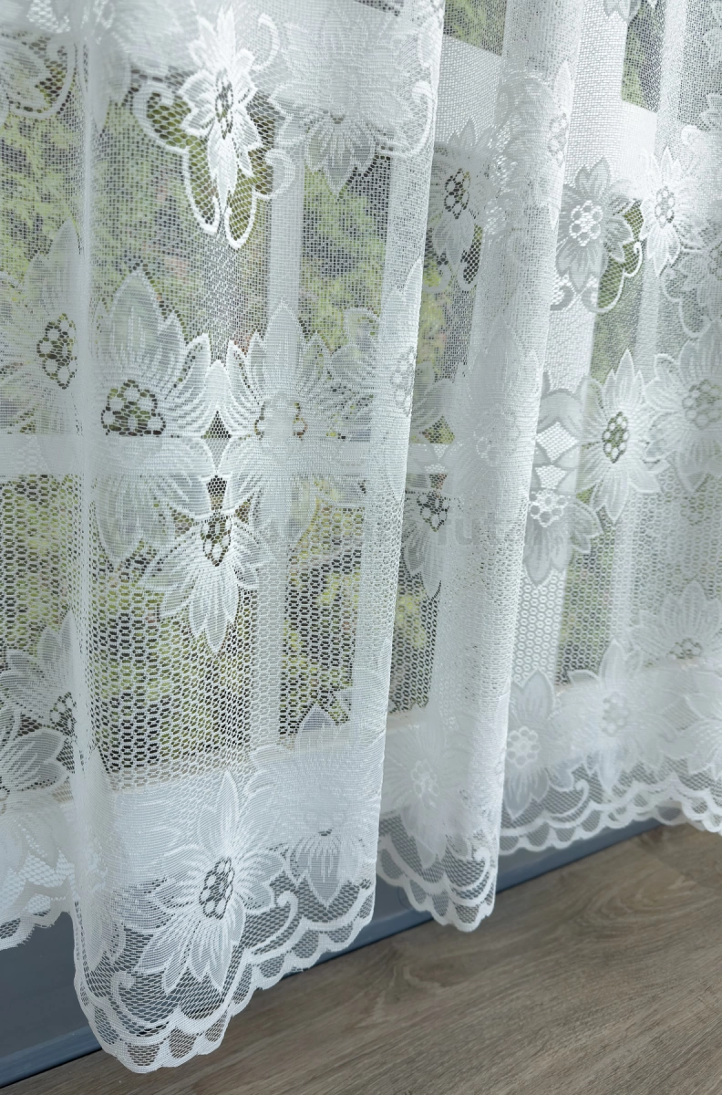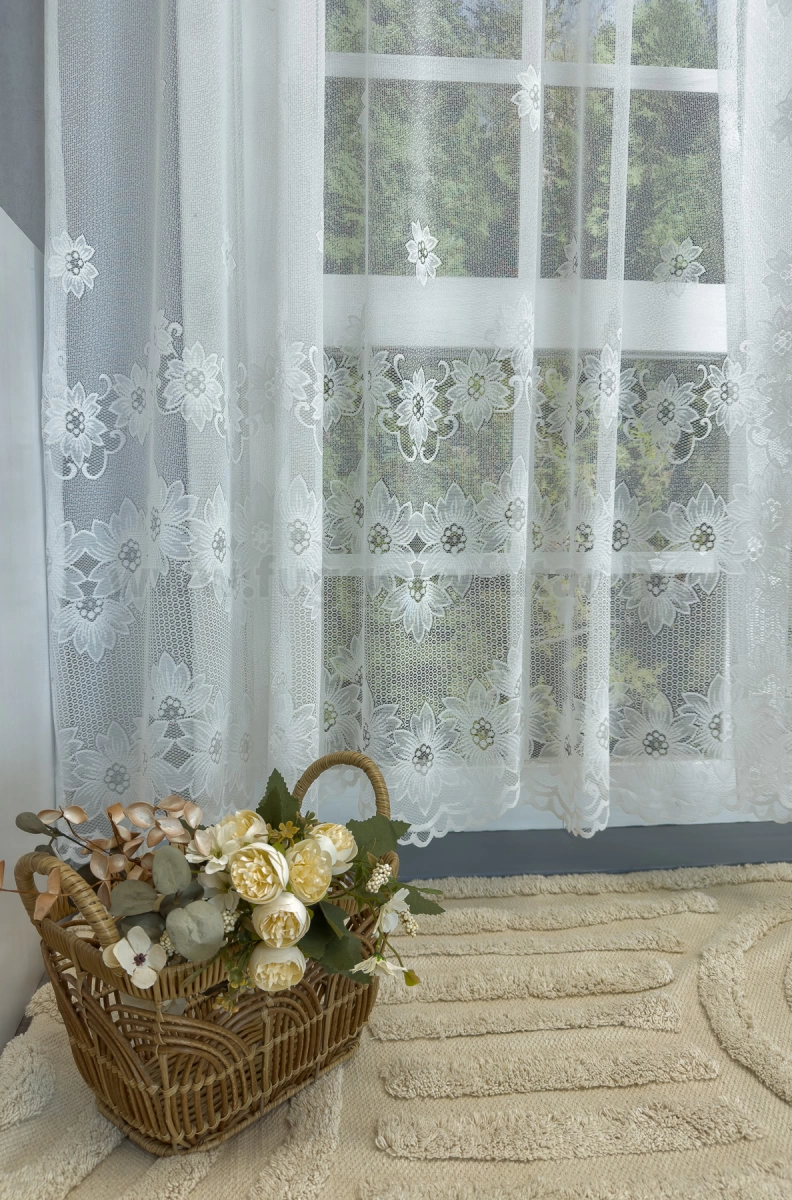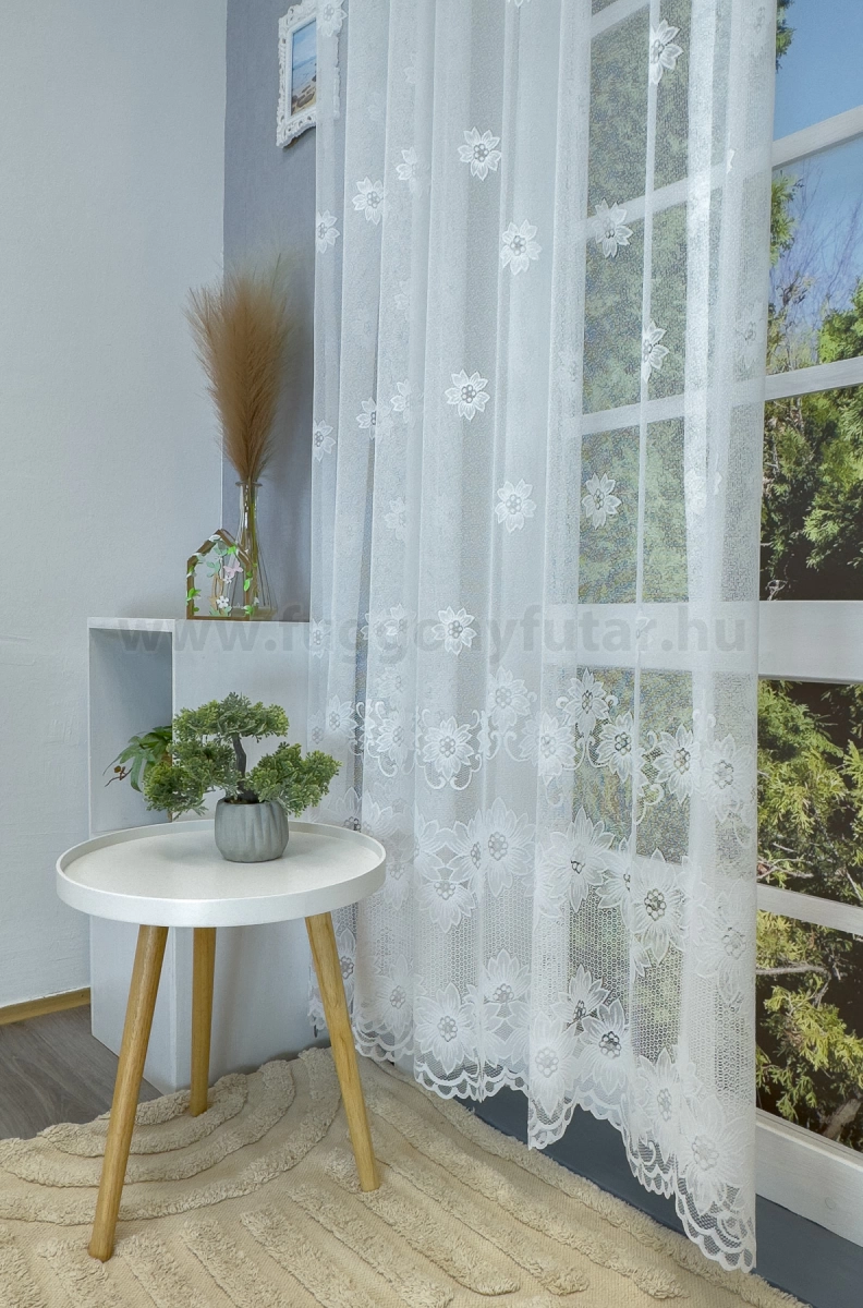 Csipkekötéshez hasonló technikával készült anyag, melyet elsősorban a romantikus vagy klasszikus lakberendezési stílus kedvelőinek ajánlunk. Nem szükséges különösebben vasalni, mosás után elég nedvesen felfüggeszteni, súlya miatt simára szárad (ahogy szokták mondani, "kihúzza" magát). 1.5x-es ráncolással ajánljuk.