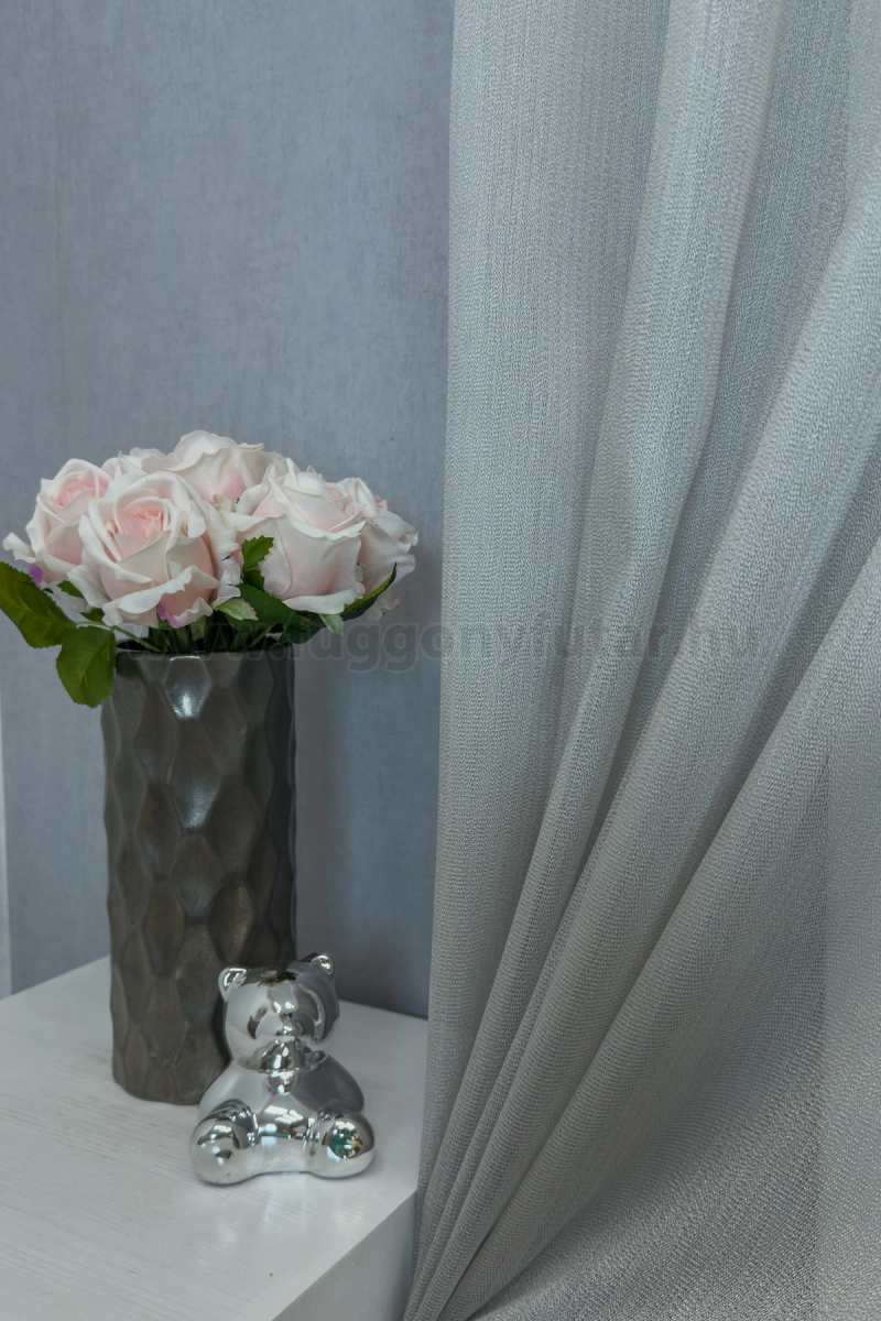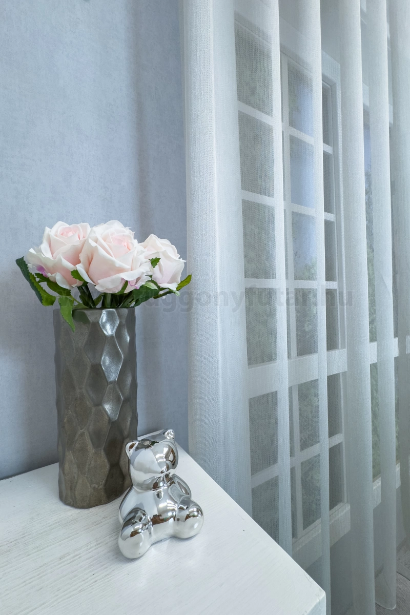 A minta nélküli anyagok univerzálisak, jól passzolnak bármihez A minta nélküli anyagokhoz bármilyen színben harmonizáló mintás anyagot, tapétát remekül párosíthatunk. Semleges és elegáns szürke A szürke semleges és elegáns. Stabilitást képvisel. Bármely élénk színnel jól kombinálható, de azt ne vigyük túlzásba. A szürke színű fényáteresztő függönyökhöz általában a narancs, sötétkék, bordó, lila és szürke színű sötétítő és dekorfüggönyök illenek legjobban.Ez a függöny többféle lakberendezési stílushoz is jól illeszthető Ez a függöny több lakberendezési irányzathoz is tökéletesen illeszkedik – legyen szó a minimál letisztultságról, a klasszikus eleganciáról, az industrial stílus karakteréről, a skandináv egyszerűségről, a glamour luxusáról vagy az Art deco ragyogásáról. Anyaga diszkréten simul bele a térbe, miközben kiemeli a helyiség hangulatát. Ideális választás, ha olyan textilt keresünk, amely rugalmasan alkalmazkodik a meglévő bútorokhoz és kiegészítőkhöz.Anyaga: jacquard Csipkekötéshez hasonló technikával készült anyag, melyet elsősorban a romantikus vagy klasszikus lakberendezési stílus kedvelőinek ajánlunk. Nem szükséges különösebben vasalni , mosás után elég nedvesen felfüggeszteni, súlya miatt simára szárad (ahogy szokták mondani, "kihúzza" magát). 1.5x-es ráncolással ajánljuk.Terasz ajtókhoz, nagyobb ablakok függönyözéséhez jól használható A karnistól a felső szegéshez szükséges anyagot beleszámítva legfeljebb 298 cm hosszú függönyt lehet belőle varrni, ez alatt bármilyen méretben elkészítjük. Méreténél fogva alkalmas lehet terasz- és erkélyajtók, nagy belmagasságú helyiségek valamint normál ablakok függönyözésére is. A függöny aljába gyárilag varrt ólomzsinór megfelelő esést kölcsönöz a függönynek, megakadályozza az indokolatlan fellebbenést és az apróbb ráncokat is kisimítja.Vasalást kevésbé igénylő anyag Az anyag kevesebb vasalást igényel, mint az átlag függöny. Sokszor elég, ha mosás után még nedvesen a helyükre akasztjuk, így kilógva magát a ráncok kisimulnak és a függönyünk teljes pompájában ragyog!