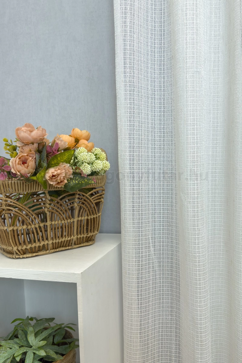 Vastagabb szálakból, hálószövéssel készült függöny anyag. Akár szúnyoghálóként is alkalmazható. 1.5x-es ráncolással ajánljuk.