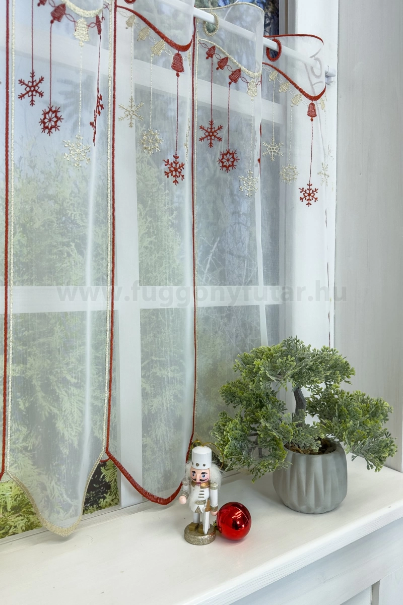 A fehér szín légies és világos, fényt hoz a szobába A fehér a világosság és a tisztaság színe, egész nap érezhetjük a friss tavaszi szellő simogatását, ha egy szép fehér függöny díszíti az ablakunkat. A fehér színű fényáteresztő függönyöket bármilyen színű sötétítő függönnyel kombinálhatjuk, de a szoba falának színét mindig vegyük figyelembe.Diszkrét csillogás elegáns megjelenéssel A csillámos szállal átszőtt függönyök finoman tükrözik a fényt, így visszafogott, mégis látványos hatást keltenek. Lágy ragyogásuk elegánsan kiemeli az ablakot, legyen szó modern, klasszikus vagy glamour enteriőrről.Ez a függöny többféle lakberendezési stílushoz is jól illeszthető Ez a függöny több lakberendezési irányzathoz is tökéletesen illeszkedik – legyen szó a klasszikus eleganciáról, a glamour luxusáról vagy a vintage nosztalgiáról. Anyaga diszkréten simul bele a térbe, miközben kiemeli a helyiség hangulatát. Ideális választás, ha olyan textilt keresünk, amely rugalmasan alkalmazkodik a meglévő bútorokhoz és kiegészítőkhöz.Anyaga: voile Vékony, könnyed, fátyolszerű anyag . Az organzához képest vastagabb szálakból szövik, így kevésbé átlátszó, nehezebben gyűrődik, bár vasalást azért igényel (gőzölős vasalóval viszonylag könnyen, sérülésmentesen vasalható). 1.5x v. 2x-es ráncolással ajánljuk.Vitrázsrudakhoz alkalmas függöny A függöny 60 cm magas. Méreténél fogva ún. kávéházi vagy vitrázs függgönyként használható, az ablak egy részének takarására alkalmas. A függöny alsó szegélye hullámos, ólomzsinór nem található benne.
