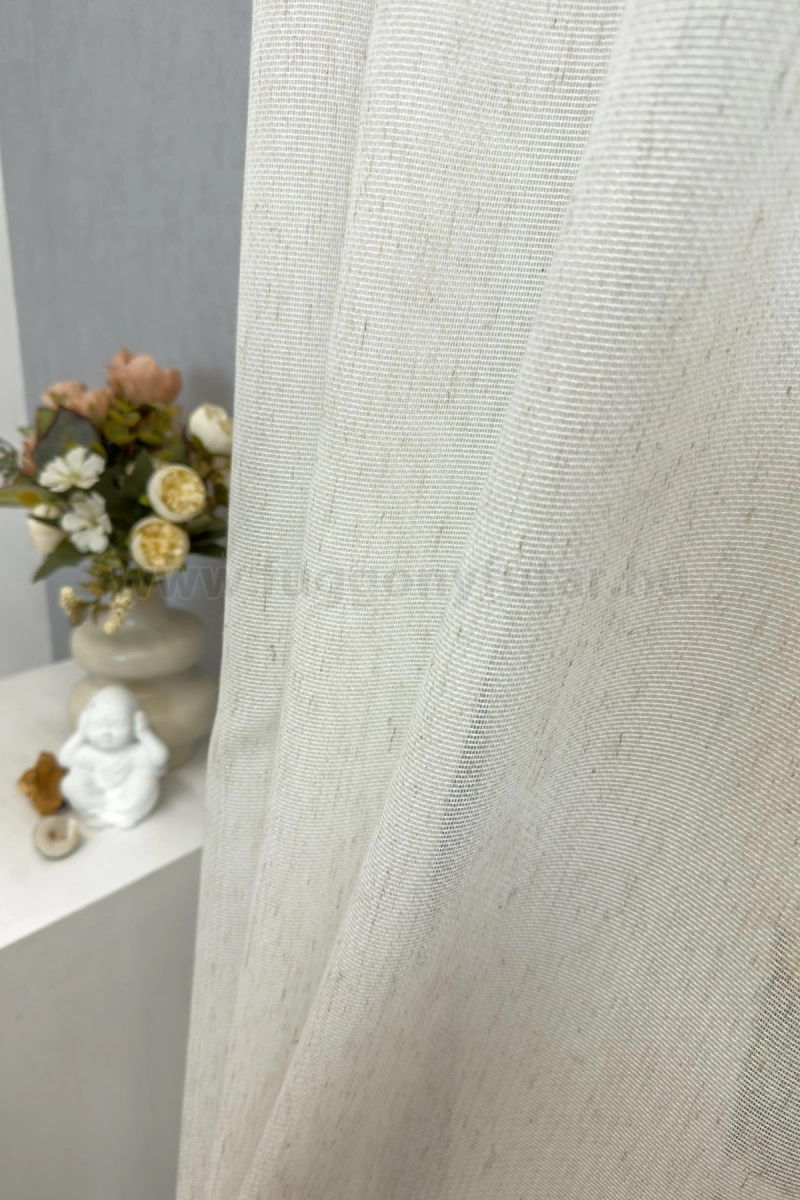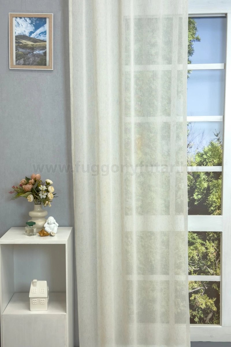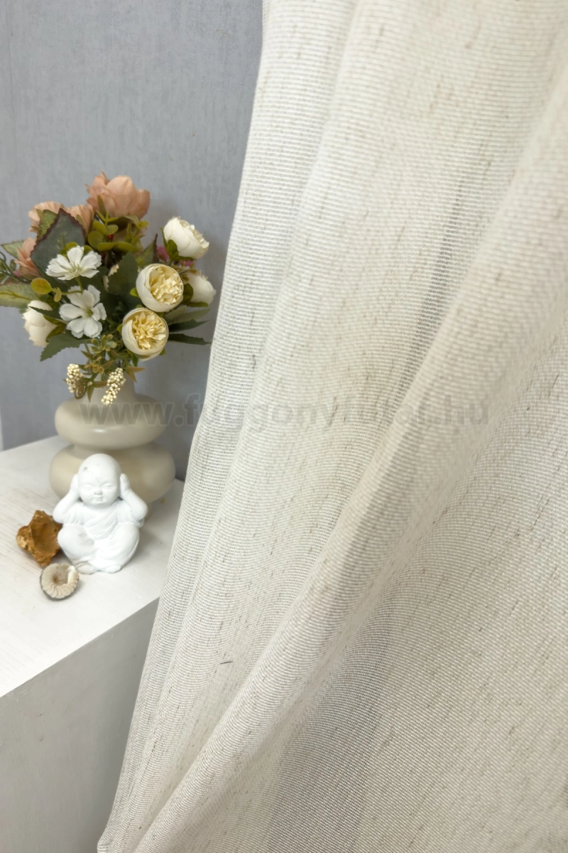 A szórt mintás anyagok izgalmas felülete bármely helyiségben jól mutat Az anyag teljes felületén elszórtan megjelenő ritkább-sűrűbb szálbeszövések izgalmas felületet hoznak létre. Bármilyen, színben harmonizáló, mintás anyagot remekül párosíthatunk hozzá. A bézs szín kellemes melegséggel árasztja el szobánkat Ez a meleg, természetes árnyalatú anyag remekül mutat bármilyen térben, amit otthonos, meleg színekkel szeretnénk berendezni. A bézs, mintás fényáteresztő függönyökhöz általában a sötétbarna, sötétkék, bordó, zöld, narancs, lila és szürke színű sötétítő és dekorfüggönyök illenek legjobban.Ez a függöny többféle lakberendezési stílushoz is jól illeszthető Ez a függöny több lakberendezési irányzathoz is tökéletesen illeszkedik – legyen szó a skandináv egyszerűségről, a vintage nosztalgiáról, a klasszikus eleganciáról vagy a mediterrán könnyedségről. Anyaga diszkréten simul bele a térbe, miközben kiemeli a helyiség hangulatát. Ideális választás, ha olyan textilt keresünk, amely rugalmasan alkalmazkodik a meglévő bútorokhoz és kiegészítőkhöz.Anyaga: struktúr Vastagabb szálakból, hálószövéssel készült függöny anyag. Akár szúnyoghálóként is alkalmazható. 1.5x-es ráncolással ajánljuk.Terasz ajtókhoz, nagyobb ablakok függönyözéséhez jól használható A karnistól a felső szegéshez szükséges anyagot beleszámítva legfeljebb 338 cm hosszú függönyt lehet belőle varrni, ez alatt bármilyen méretben elkészítjük. Méreténél fogva alkalmas lehet terasz- és erkélyajtók, nagy belmagasságú helyiségek valamint normál ablakok függönyözésére is. A függöny aljába gyárilag varrt ólomzsinór megfelelő esést kölcsönöz a függönynek, megakadályozza az indokolatlan fellebbenést és az apróbb ráncokat is kisimítja.