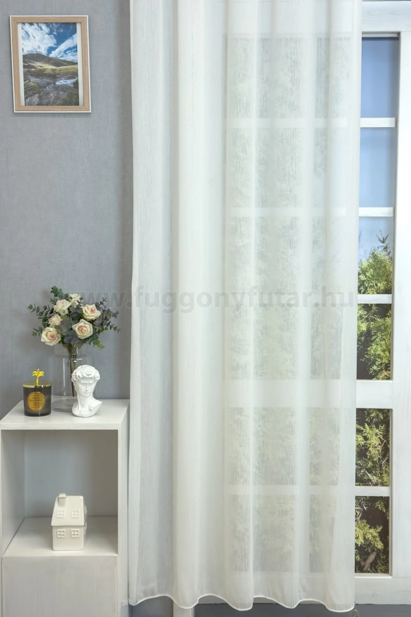 A szórt mintás anyagok izgalmas felülete bármely helyiségben jól mutat Az anyag teljes felületén elszórtan megjelenő ritkább-sűrűbb szálbeszövések izgalmas felületet hoznak létre. Bármilyen, színben harmonizáló, mintás anyagot remekül párosíthatunk hozzá. A bézs szín kellemes melegséggel árasztja el szobánkat Ez a meleg, természetes árnyalatú anyag remekül mutat bármilyen térben, amit otthonos, meleg színekkel szeretnénk berendezni. A bézs színű fényáteresztő függönyökhöz általában a sötétbarna, sötétkék, bordó, zöld, narancs, lila és szürke színű sötétítő és dekorfüggönyök illenek legjobban.Ez a függöny többféle lakberendezési stílushoz is jól illeszthető Ez a függöny több lakberendezési irányzathoz is tökéletesen illeszkedik – legyen szó a mediterrán könnyedségről, a klasszikus eleganciáról, a minimál letisztultságról, a vintage nosztalgiáról vagy a skandináv egyszerűségről. Anyaga diszkréten simul bele a térbe, miközben kiemeli a helyiség hangulatát. Ideális választás, ha olyan textilt keresünk, amely rugalmasan alkalmazkodik a meglévő bútorokhoz és kiegészítőkhöz.Anyaga: sablé Változó vastagságú szálakból szőtt anyag. Kevésbé hajlamos a gyűrődésre , mint a voile. 1.5x-es ráncolással ajánljuk.Terasz ajtókhoz, nagyobb ablakok függönyözéséhez jól használható A karnistól a felső szegéshez szükséges anyagot beleszámítva legfeljebb 298 cm hosszú függönyt lehet belőle varrni, ez alatt bármilyen méretben elkészítjük. Méreténél fogva alkalmas lehet terasz- és erkélyajtók, nagy belmagasságú helyiségek valamint normál ablakok függönyözésére is. A függöny aljába gyárilag varrt ólomzsinór megfelelő esést kölcsönöz a függönynek, megakadályozza az indokolatlan fellebbenést és az apróbb ráncokat is kisimítja.Vasalást kevésbé igénylő anyag Az anyag kevesebb vasalást igényel, mint az átlag függöny. Sokszor elég, ha mosás után még nedvesen a helyükre akasztjuk, így kilógva magát a ráncok kisimulnak és a függönyünk teljes pompájában ragyog!