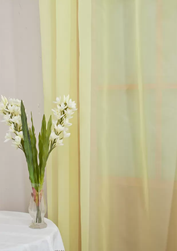 Citromsárga színű, minta nélküli voile függöny. 300 cm magas.