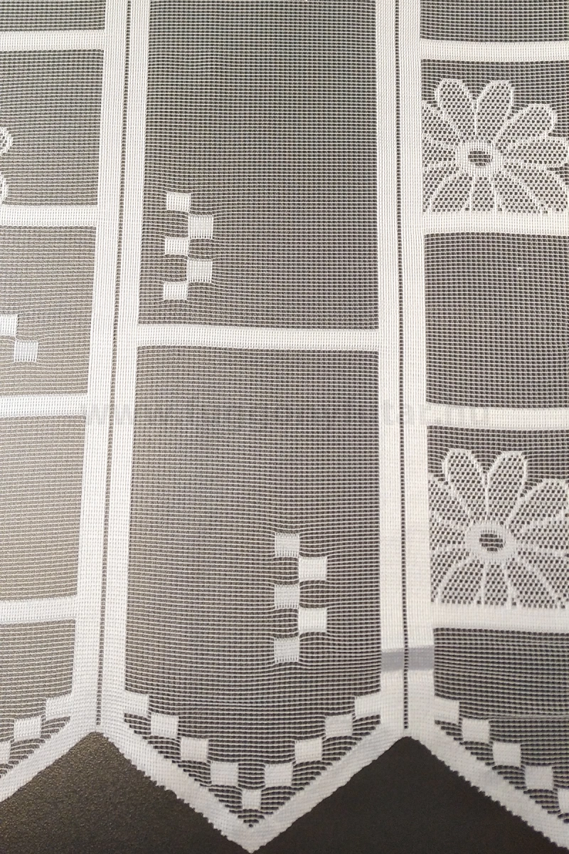 A függöny 60 cm magas. Méreténél fogva ún. kávéházi vagy vitrázs függgönyként használható, az ablak egy részének takarására alkalmas. A függöny alsó szegélye cikk-cakkos, ólomzsinór nem található benne.
