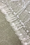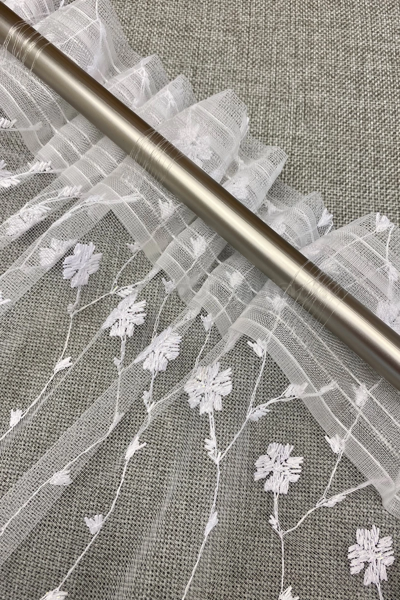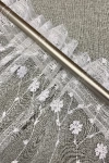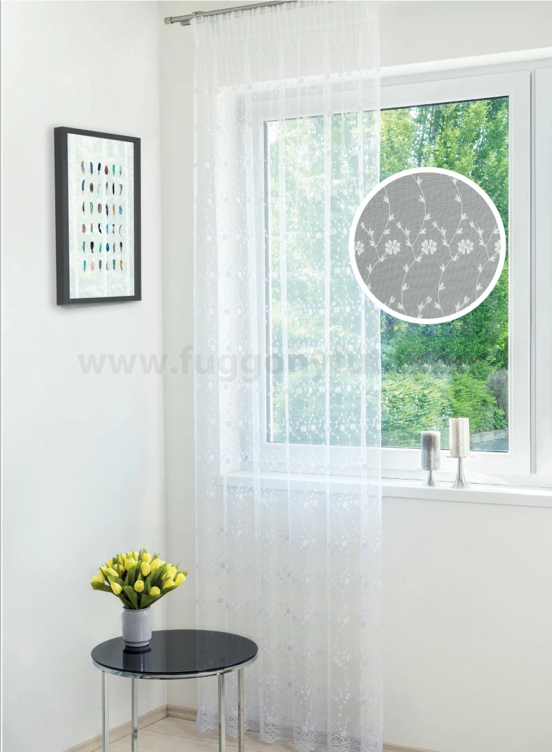 Csipkekötéshez hasonló technikával készült anyag, melyet elsősorban a romantikus vagy klasszikus lakberendezési stílus kedvelőinek ajánlunk. Nem szükséges különösebben vasalni, mosás után elég nedvesen felfüggeszteni, súlya miatt simára szárad (ahogy szokták mondani, "kihúzza" magát). 1.5x-es ráncolással ajánljuk.Terasz ajtókhoz, nagyobb ablakok függönyözéséhez jól használható