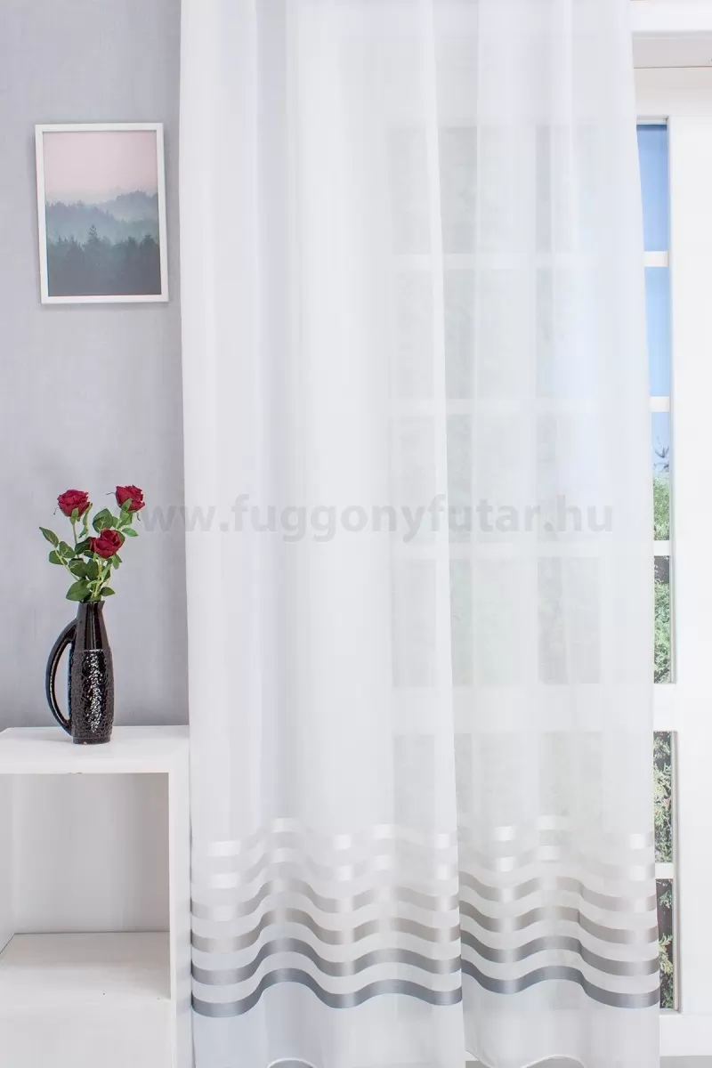 JASMIN/01/140x245-K Bordűrös, ezüst, szürke csíkos, fehér sablet készfüggöny 140x245 cm, ólomzsinórral