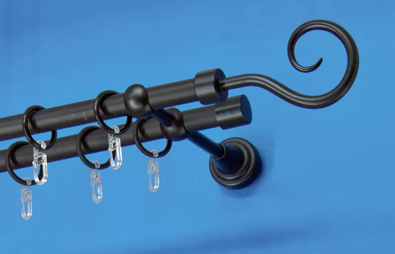 Fém függönykarnis-garnitúra, "pásztor" végzáróval, kétsoros, fekete, 160 cm, átm. 16 mm