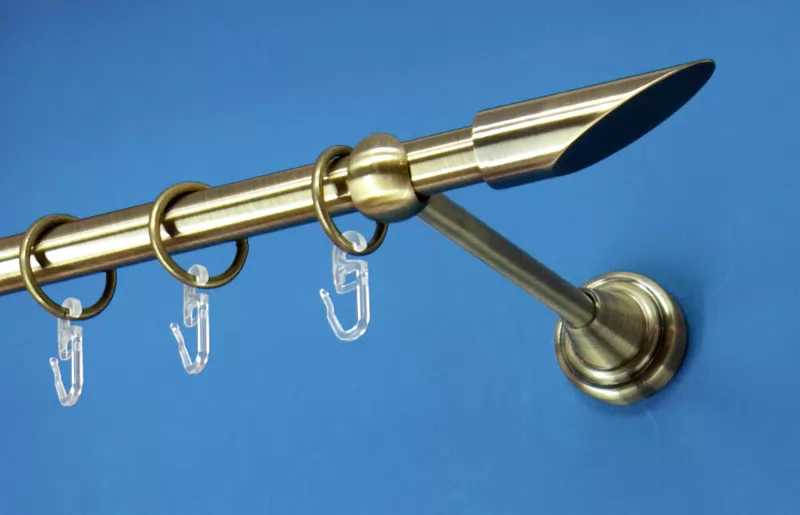 Fém függönykarnis-garnitúra, "rúzs" végzáróval, egysoros, antik arany, 240 cm, átm. 16 mm
