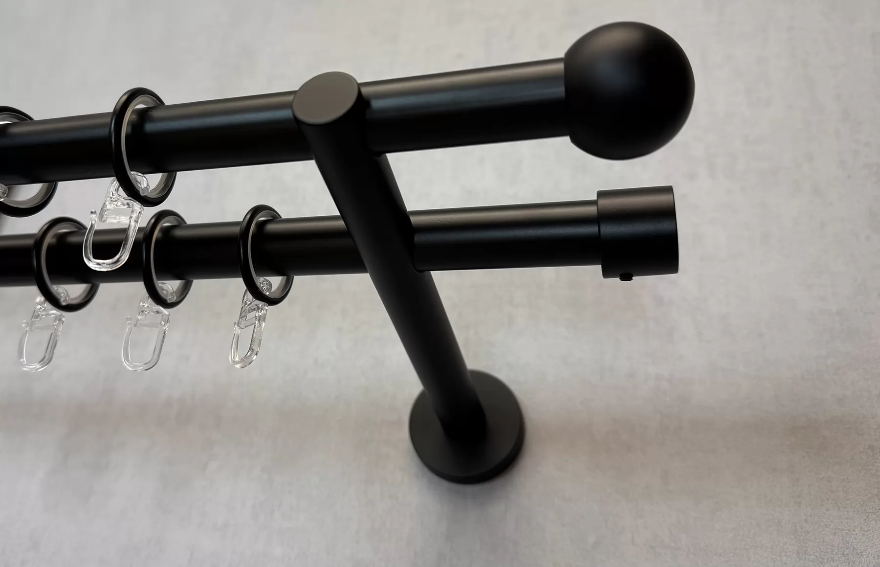 Beta – matt fekete, kétsoros fém függönykarnis-garnitúra, 160 cm, átm. 19 mm
