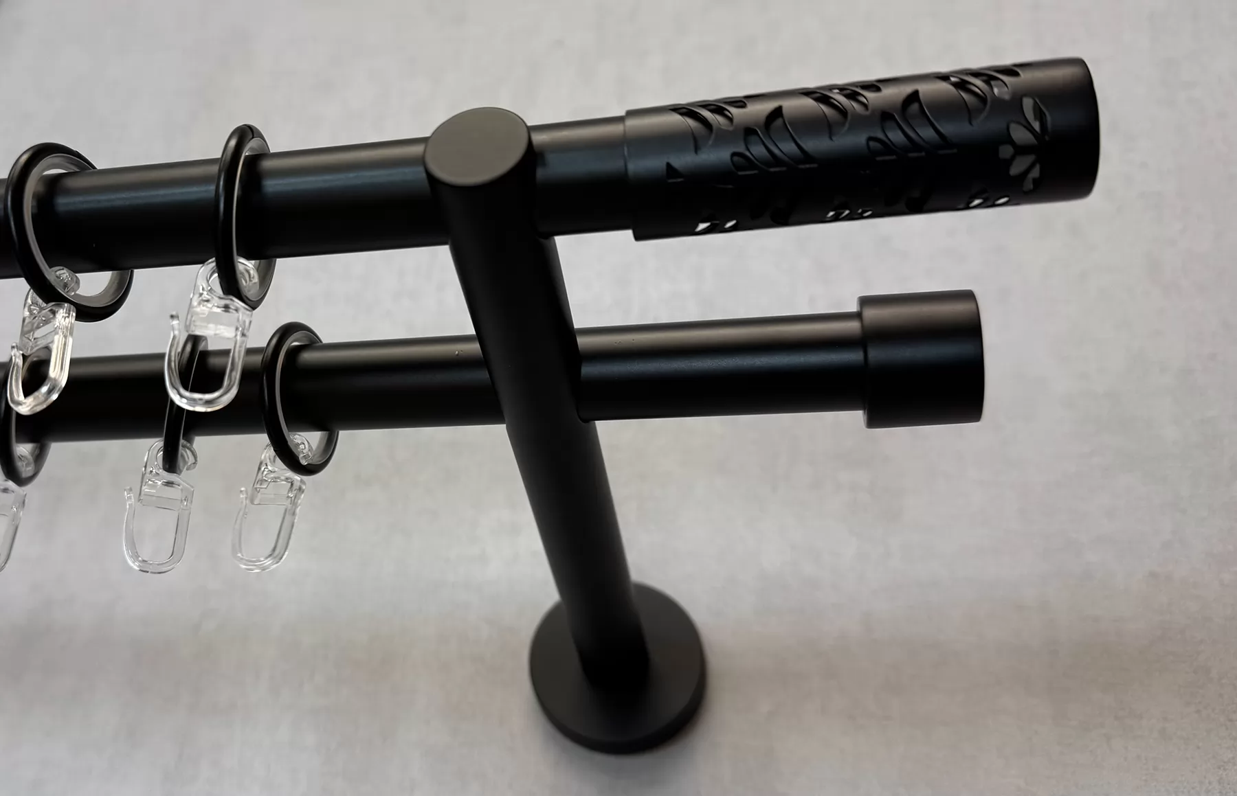 Lotus – matt fekete, kétsoros fém függönykarnis-garnitúra, 160 cm, átm. 19 mm