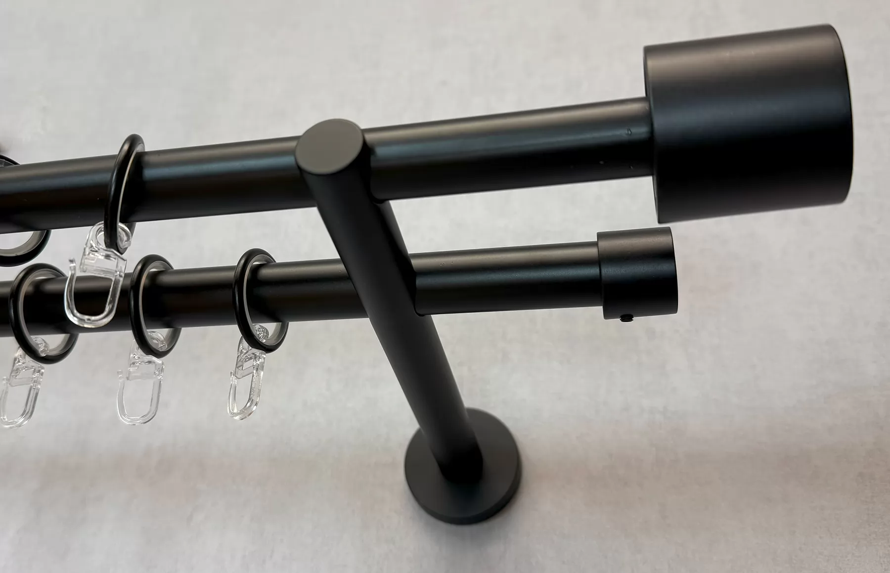 Tobacco – matt fekete, kétsoros fém függönykarnis-garnitúra, 160 cm, átm. 19 mm