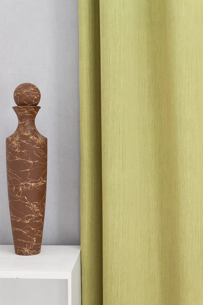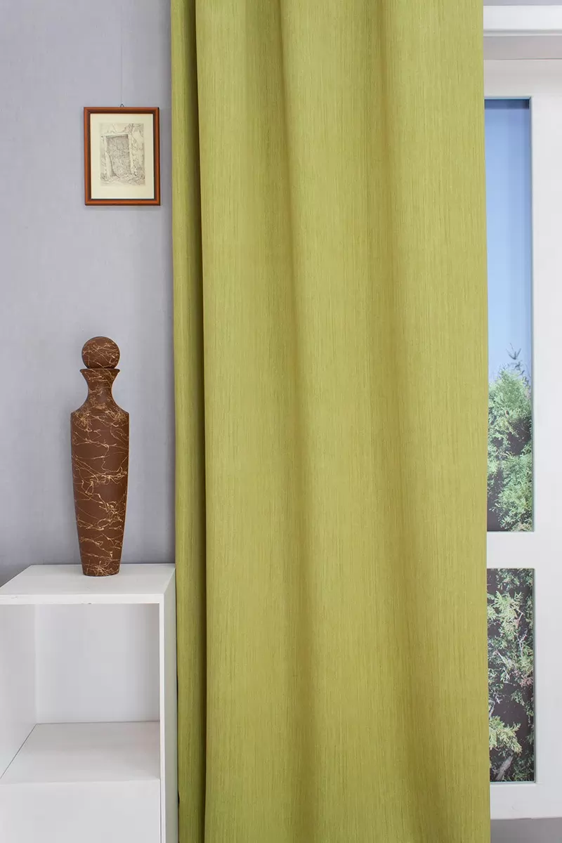 A zöld színű sötétítő anyagokhoz általában a tónusában hasonló zöld, rózsaszín, bézs, ekrü és fehér színű fényáteresztő függönyök illenek legjobban.
