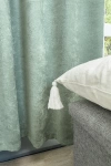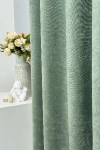 A zöld színű sötétítő anyagokhoz általában a tónusában hasonló zöld, rózsaszín, bézs, ekrü és fehér színű fényáteresztő függönyök illenek legjobban.