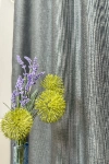 A szürke színű sötétítő függönyöket bátran párosíthatjuk bármely élénk színű fényáteresztő anyaggal.