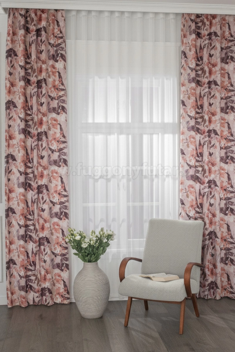 A rózsaszínű sötétítő anyagokhoz általában a lila, rózsaszín, fehér, bézs, ekrü és szürke színű fényáteresztő függönyök illenek legjobban.