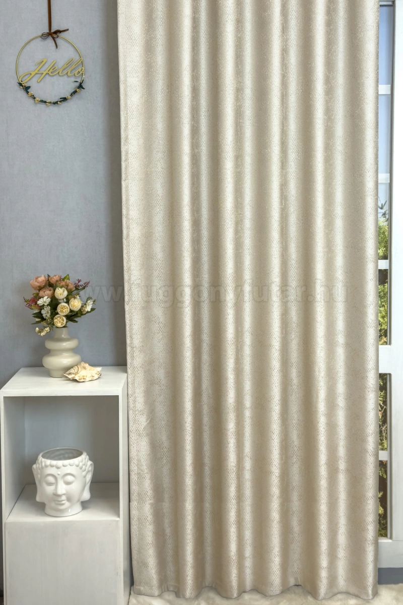 Ez a függöny több lakberendezési irányzathoz is tökéletesen illeszkedik – legyen szó a klasszikus eleganciáról, a glamour luxusáról vagy az Art deco ragyogásáról. Anyaga diszkréten simul bele a térbe, miközben kiemeli a helyiség hangulatát. Ideális választás, ha olyan textilt keresünk, amely rugalmasan alkalmazkodik a meglévő bútorokhoz és kiegészítőkhöz.