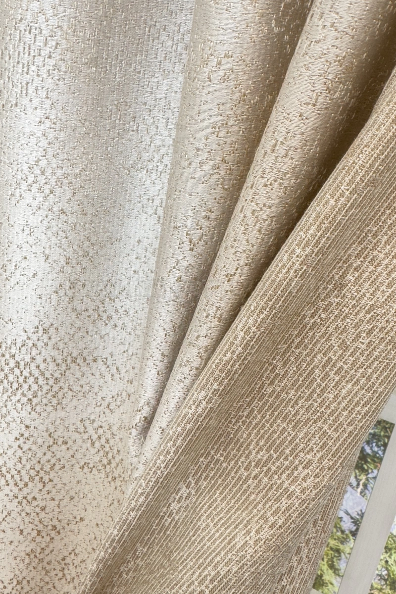 A minta a szövéskor kerül a függöny anyagba, tehát nem utólag nyomják rá. Az egymással harmonizáló, különböző színű fonalak alkalmazása tovább növelik a választás lehetőségét. A motívumok kidolgozottsága ma már oly tökéletes, hogy sokszor az egyszínű festés is elegendő a pozitív élmény eléréséhez. A korábban a súlyosabb lakástextileknél használt mintázási mód ma már a könnyű dekorációs függönyök készítésénél is általánosan elterjedt megoldás. 30 fokon mosható, vasalást kevésbé igényel.