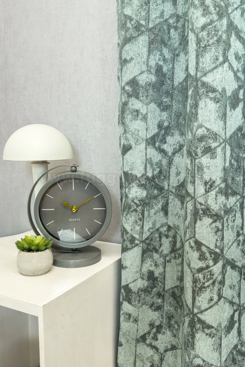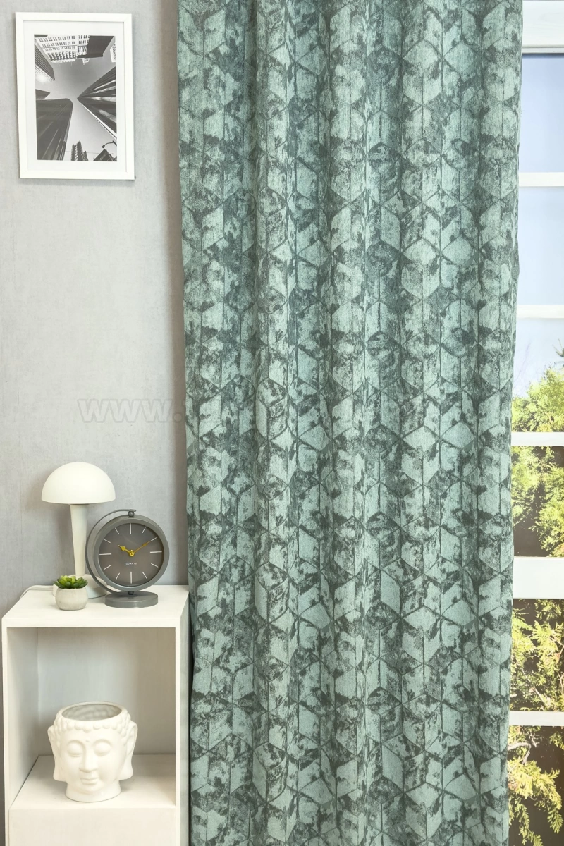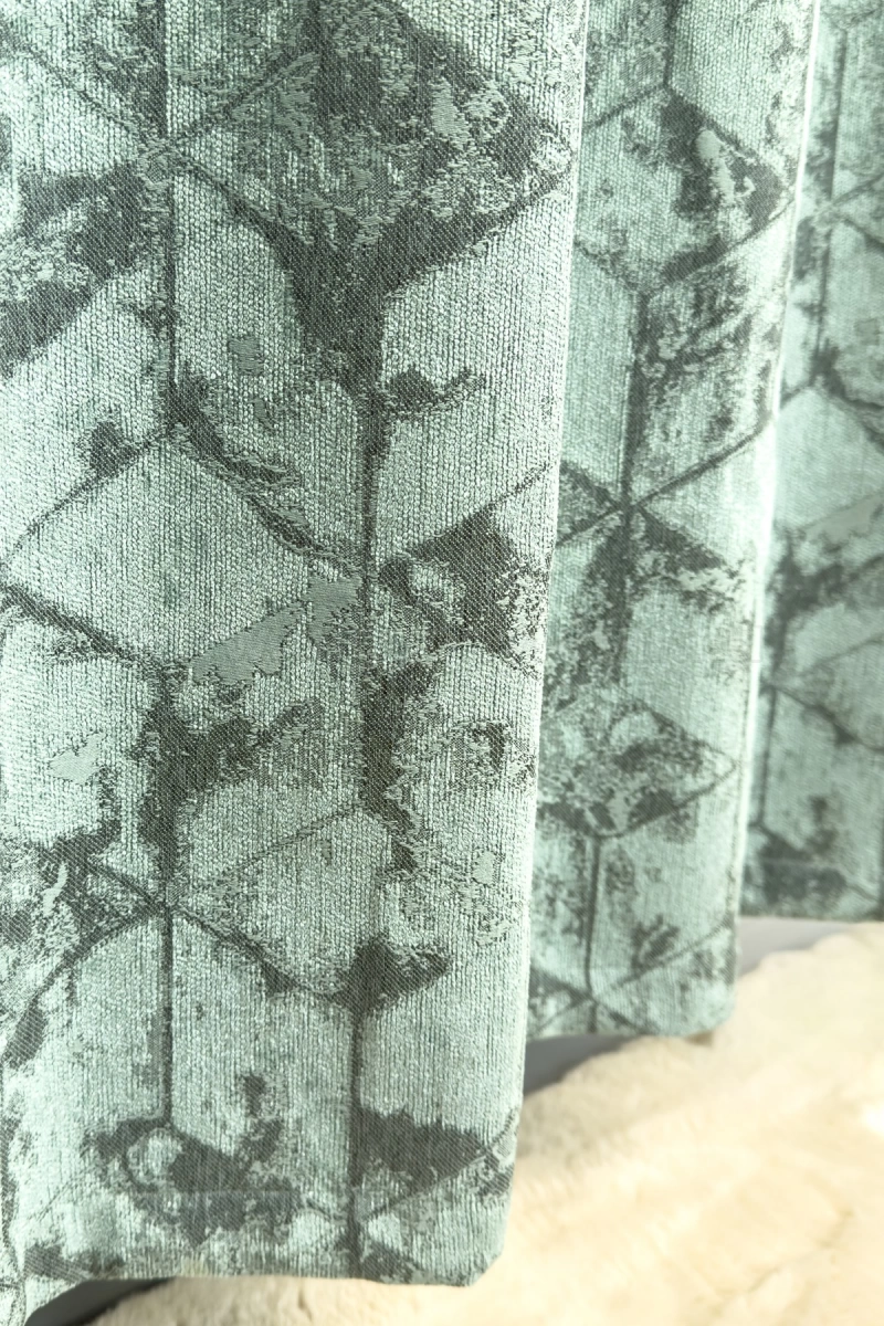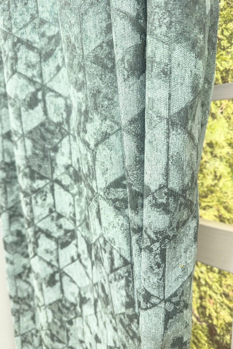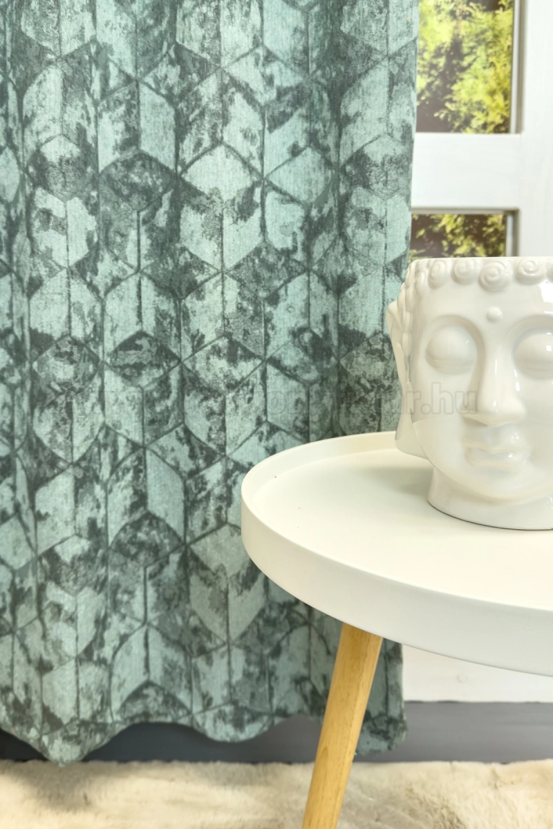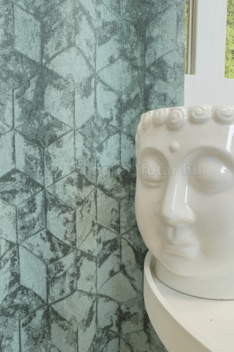 Quadrat - Türkiz színű bársonyos felületű, geometriai mintás, jacquard szövött dekorfüggöny