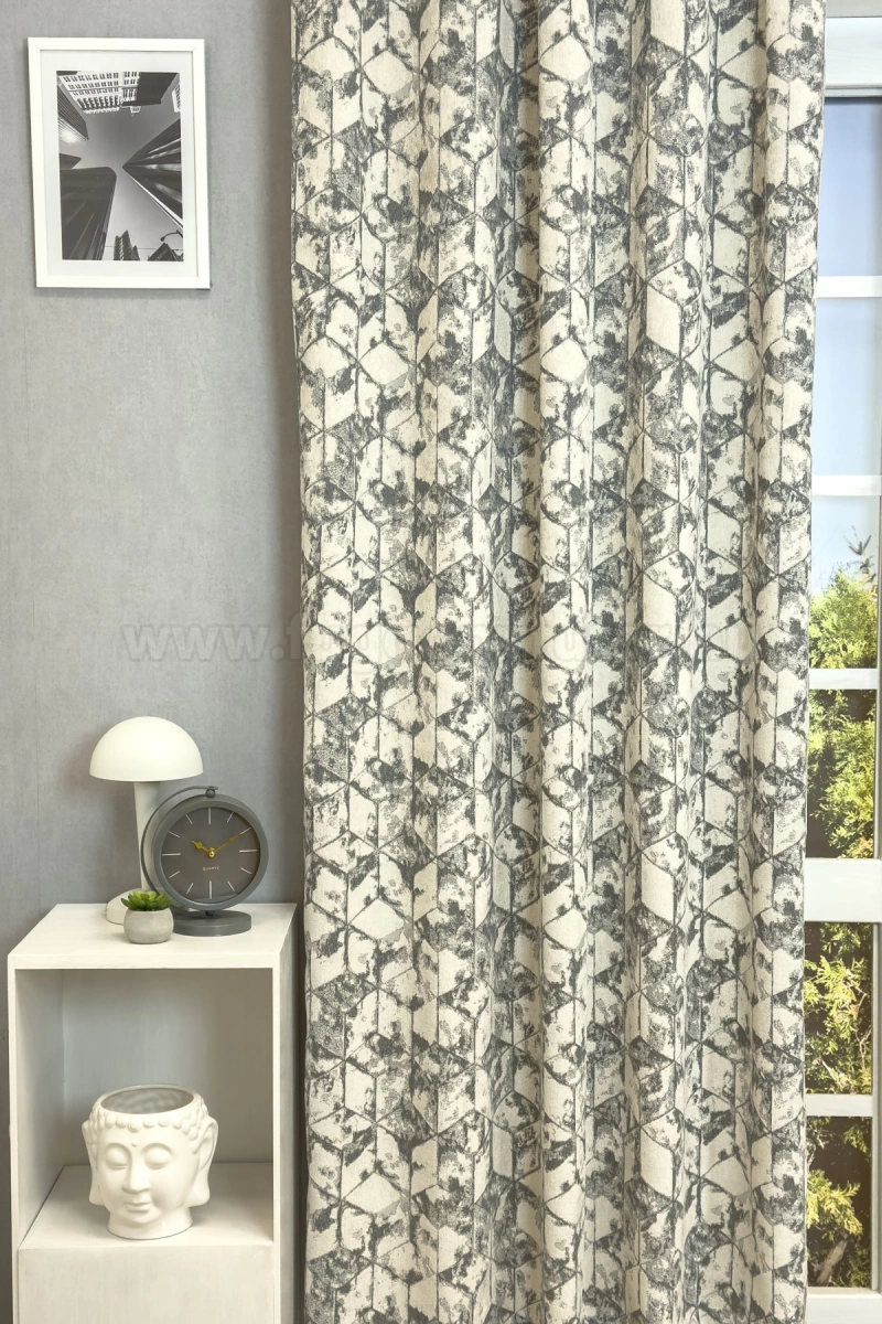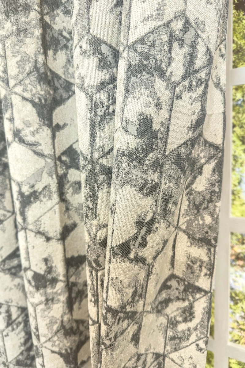 Egyszerű formák ritmusos ismétlődése jellemzi legjobban ezt a geometrikus mintázatú anyagot. Egyszínű vagy szórt mintázatú fényáteresztő függönnyel párosítsuk, hogy hangsúlyos maradhasson a függöny formavilága.