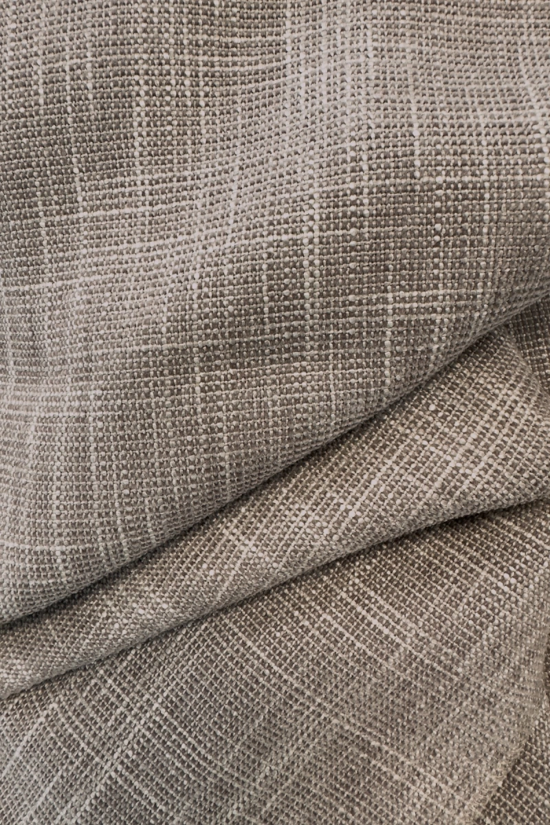 Az anyag teljes felületén elszórtan megjelenő ritkább-sűrűbb szálbeszövések izgalmas felületet hoznak létre. Bármilyen, színben harmonizáló, mintás anyagot remekül párosíthatunk hozzá.